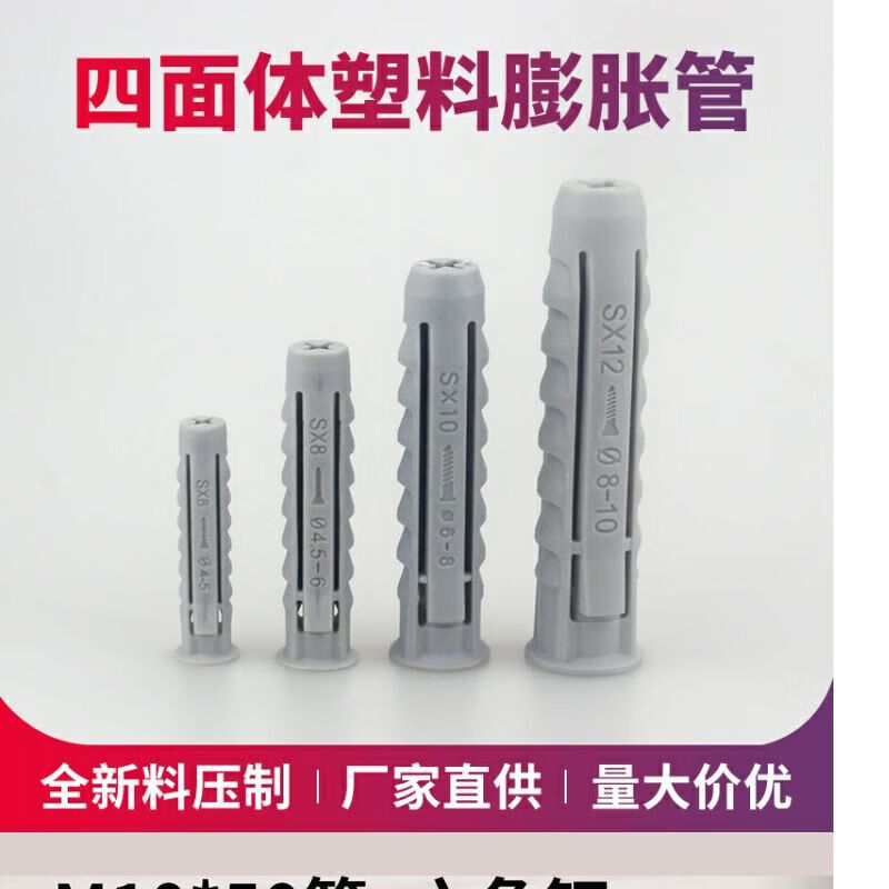 He Jiagong TV bracket hanger expansion screw plastic expansion tube rubber plug expansion plug tetrahedron M6 6*30 individual tube (500 pieces)