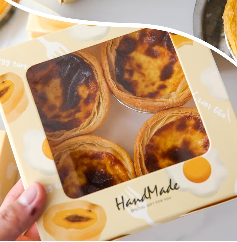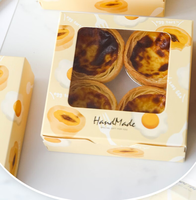 He Jiagong Egg Tart Box Egg Tart Packing Box Disposable 4 capsules 6 boxes 2 packing cartons Snow Mei Niang 3 can beige floral handbags 10 pcs