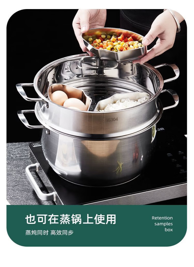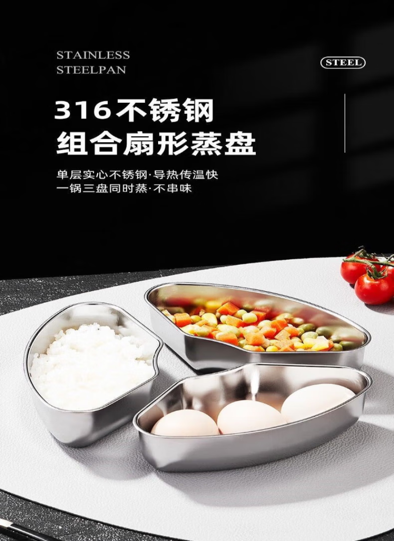 He Jiagong fan-shaped steaming bowl 316 stainless steel steaming tray steaming box household steamer cage thickened steam grid electric fan-shaped steaming box 3 large