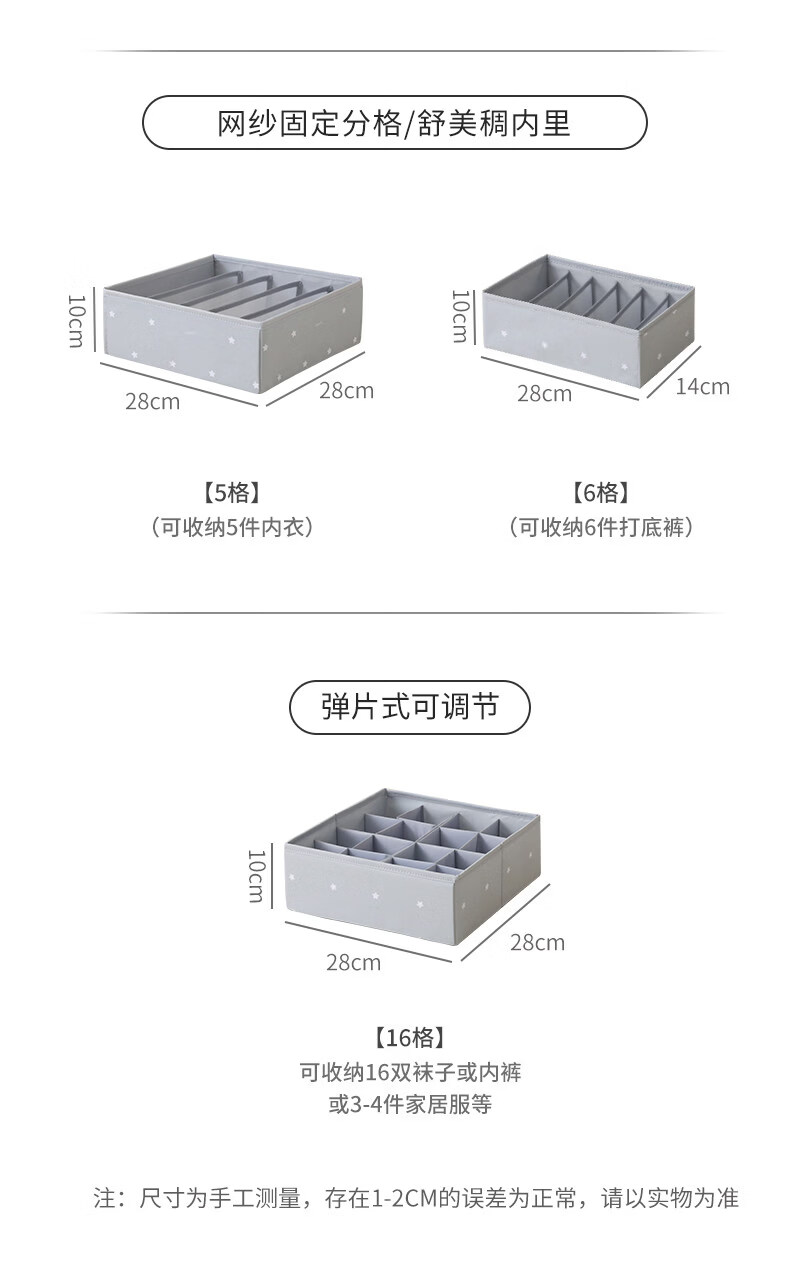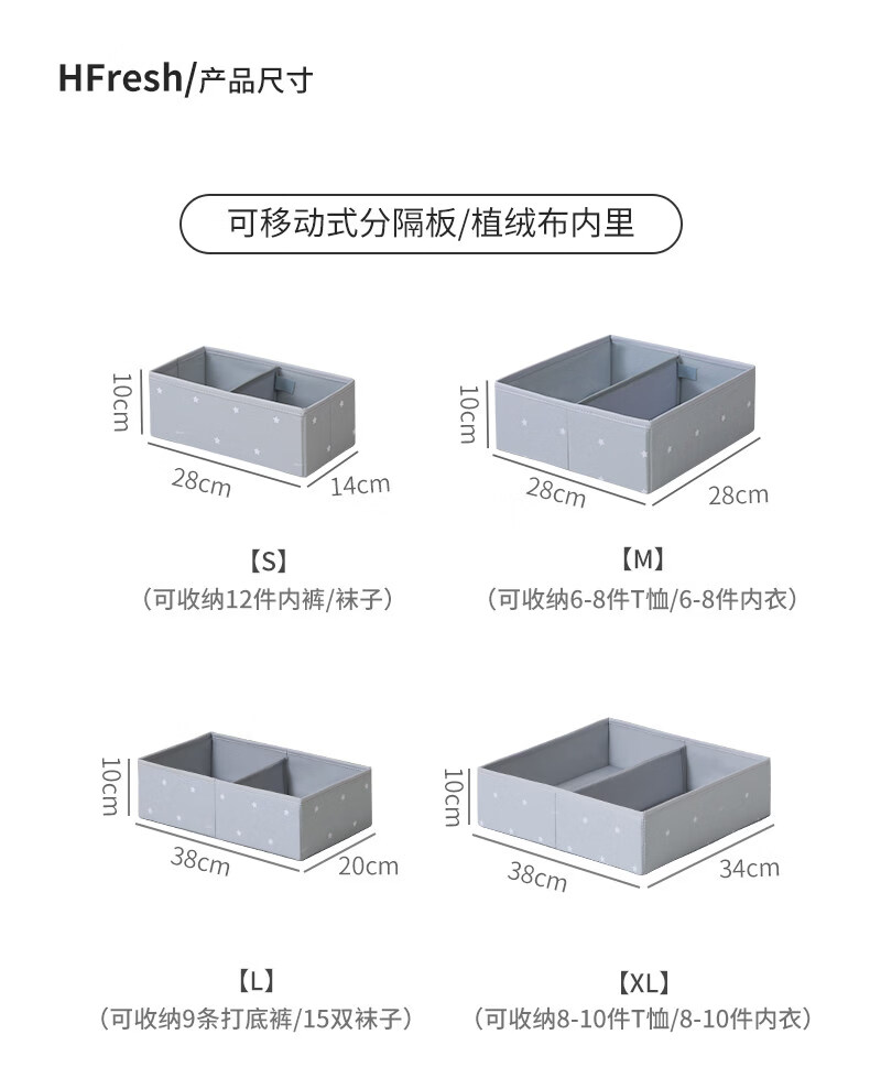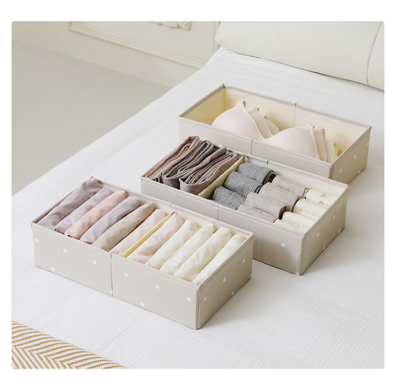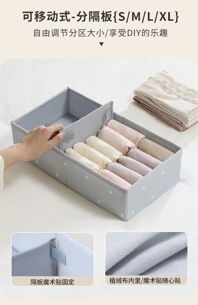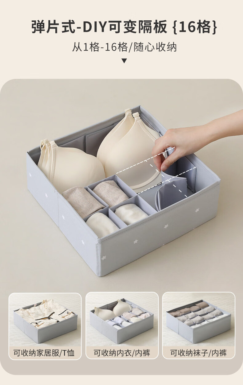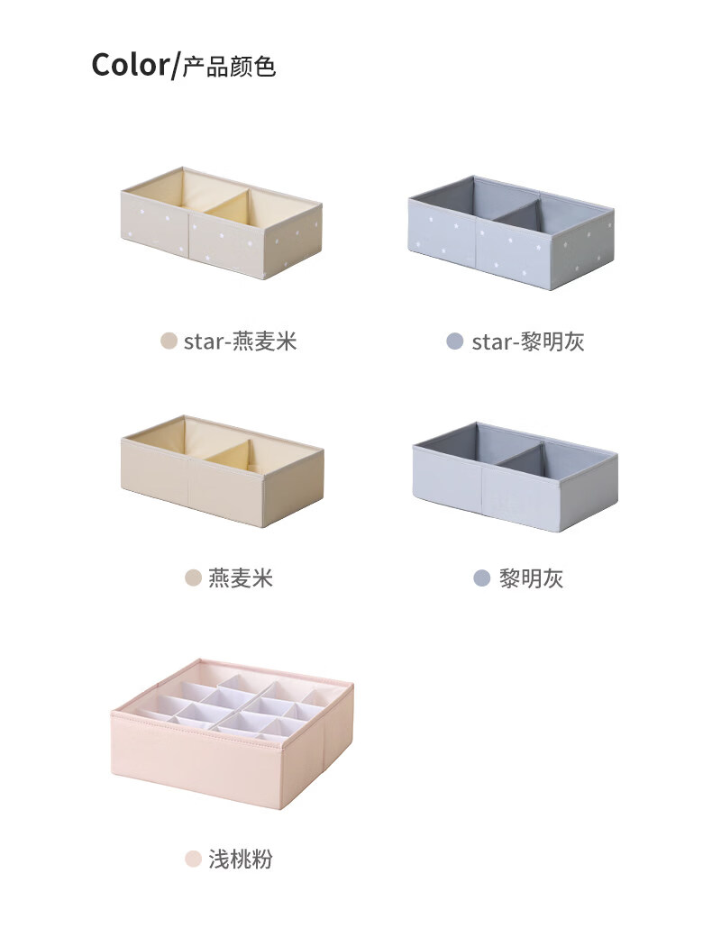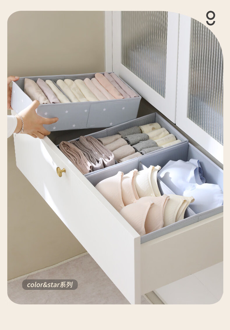 Tianzong Underwear Storage Box Drawer Divider Organizing Box Bra Socks Storage Artifact Underwear Box star-Dawn Gray S can store 12 pieces of underwear_socks 28*14*10cm