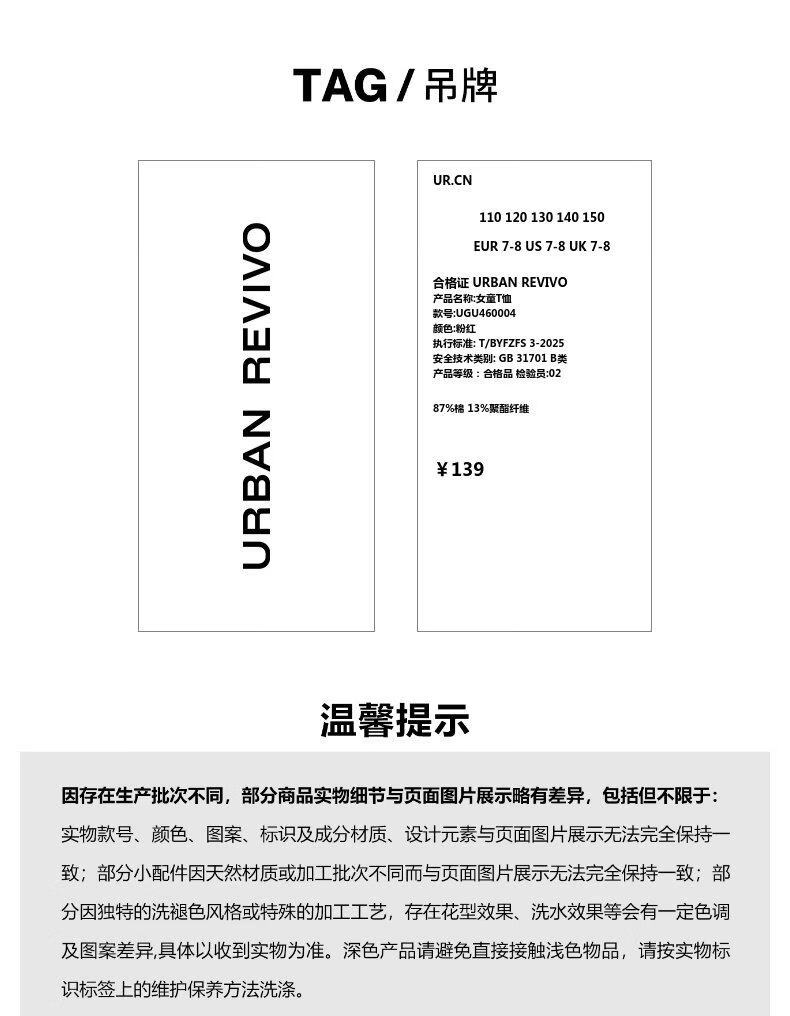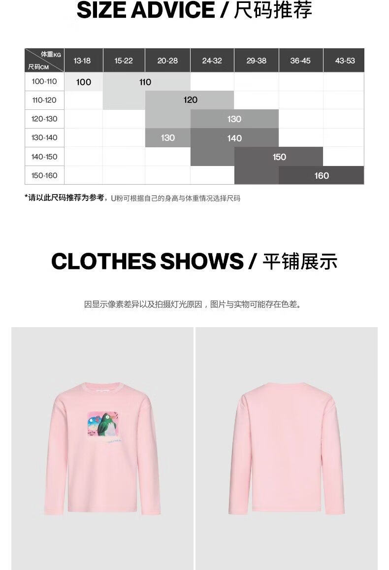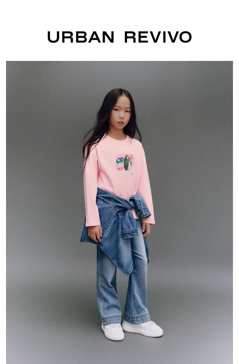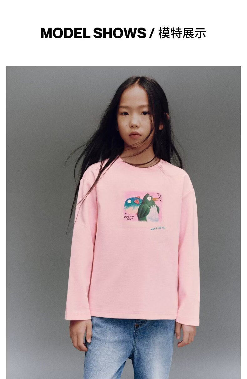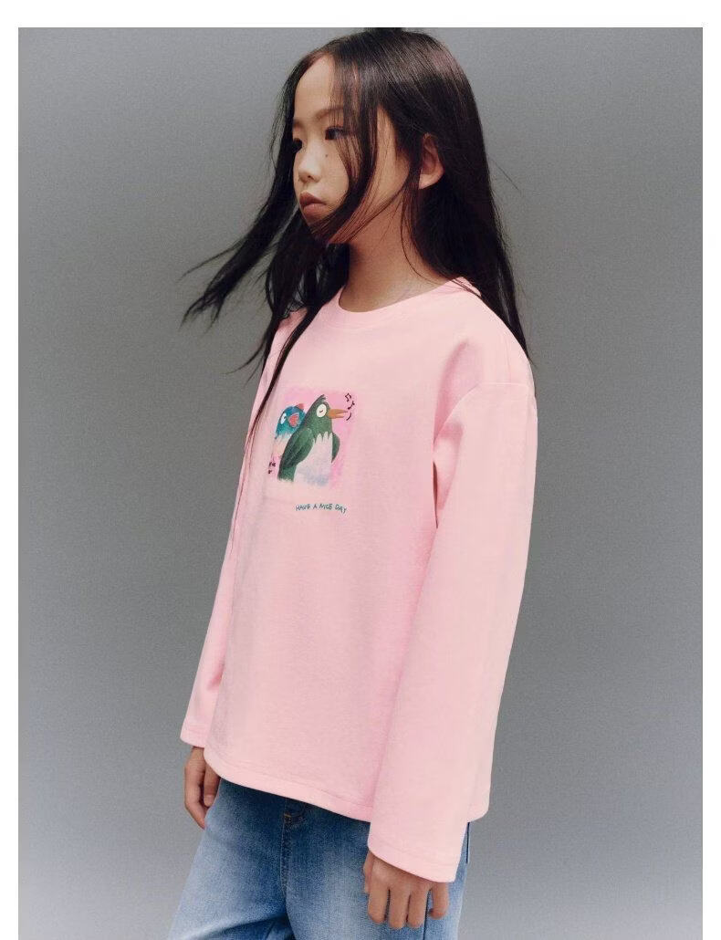 UR2026 Spring New Children's Clothing Girls Casual Simple Daily Fun Printed T-shirt UGU460004 Pink 140