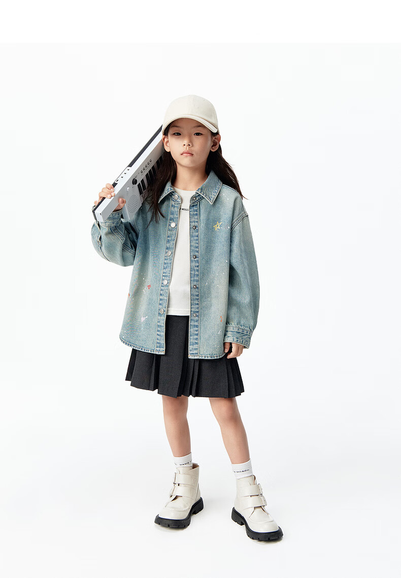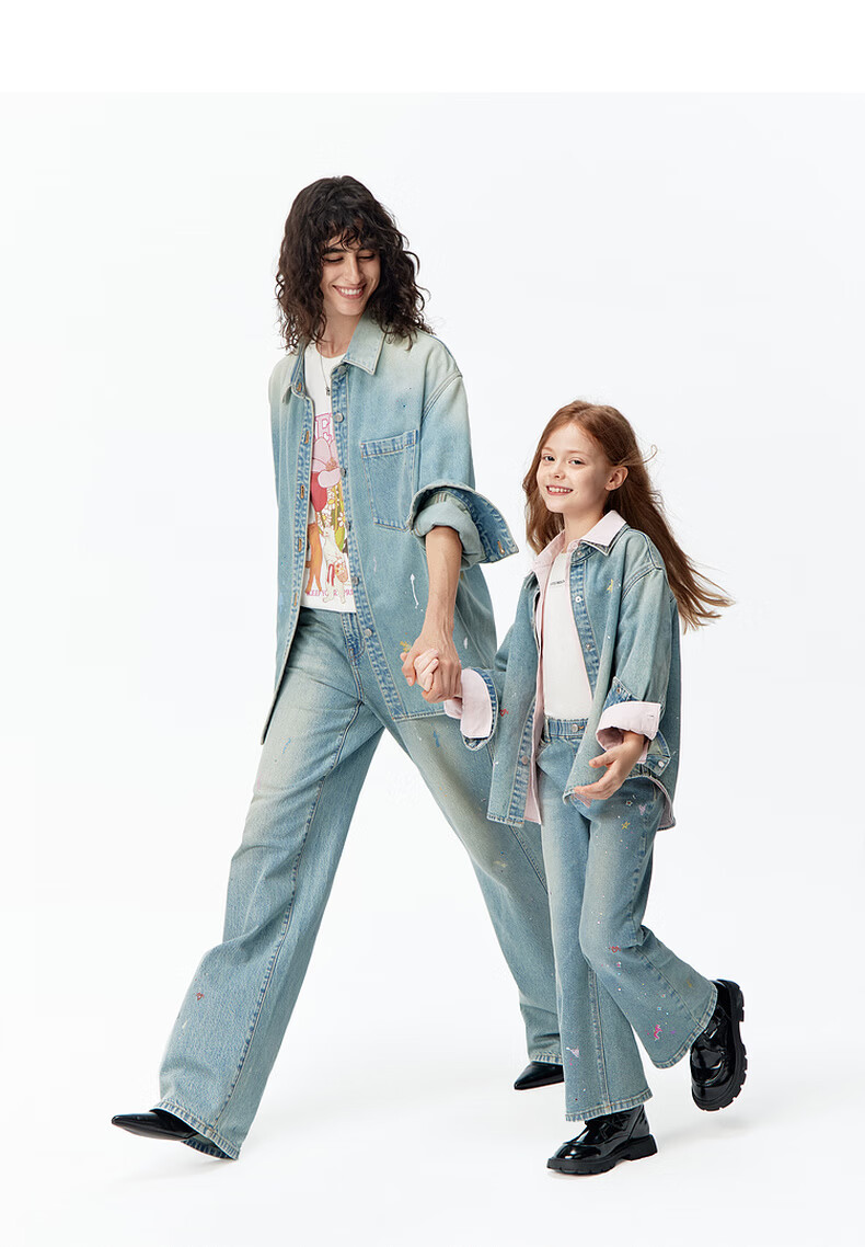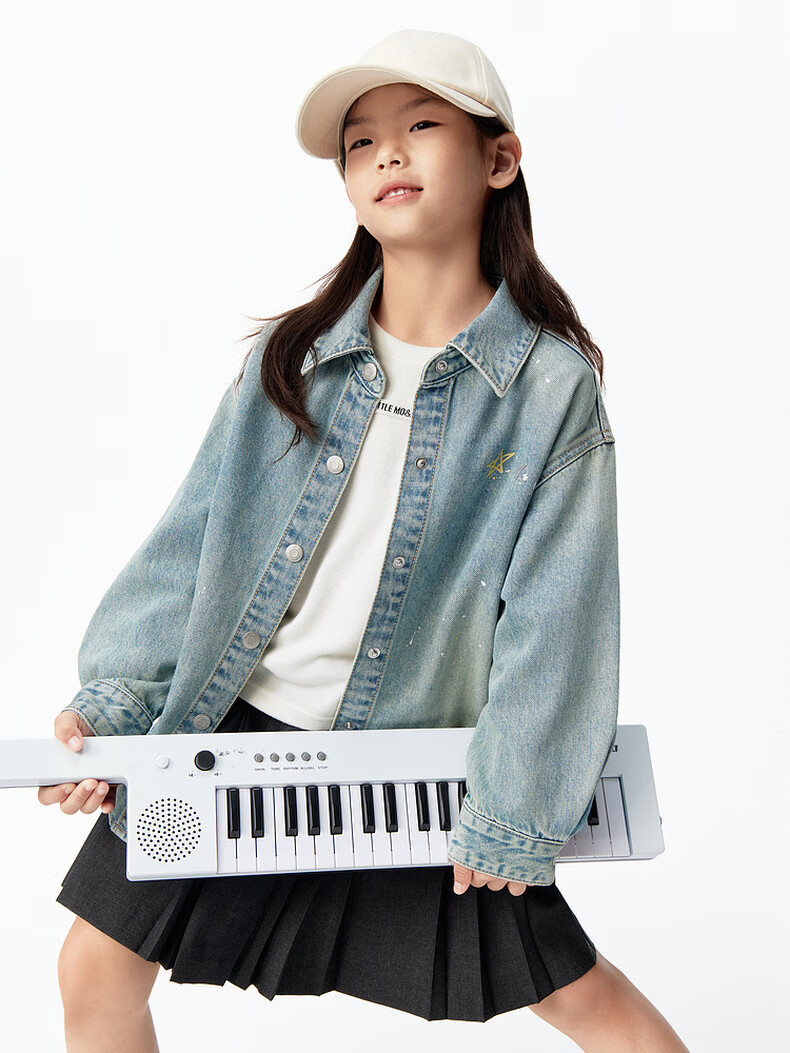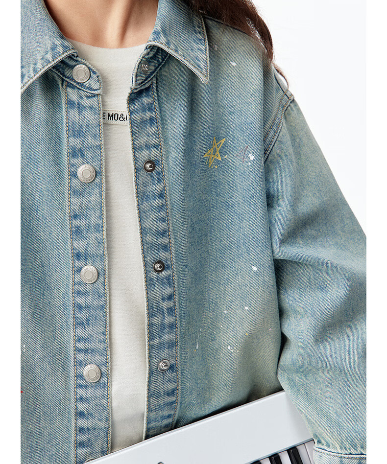 Little MO&Co. Show same style little moco children's clothing 26 new children's pony pure cotton denim shirt long-sleeved parent-child denim blue 140 140/68