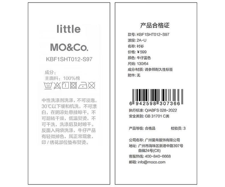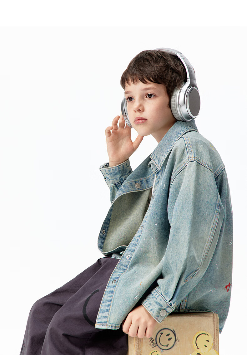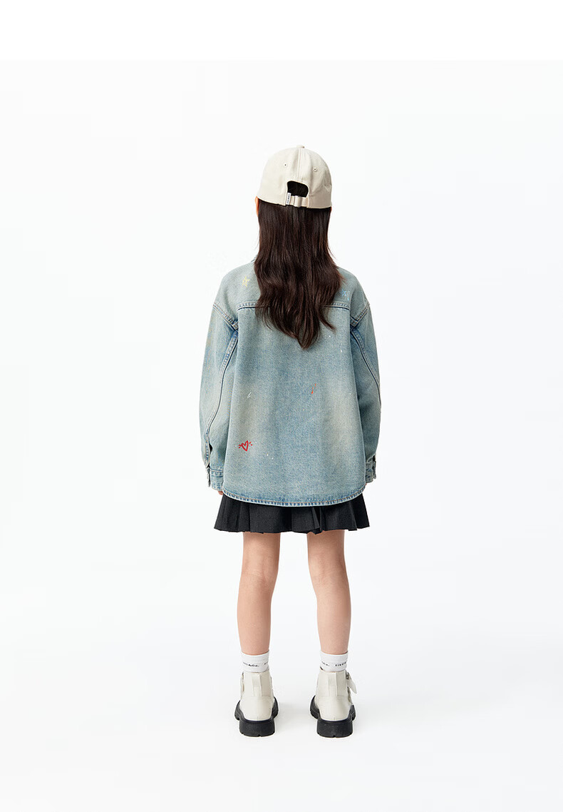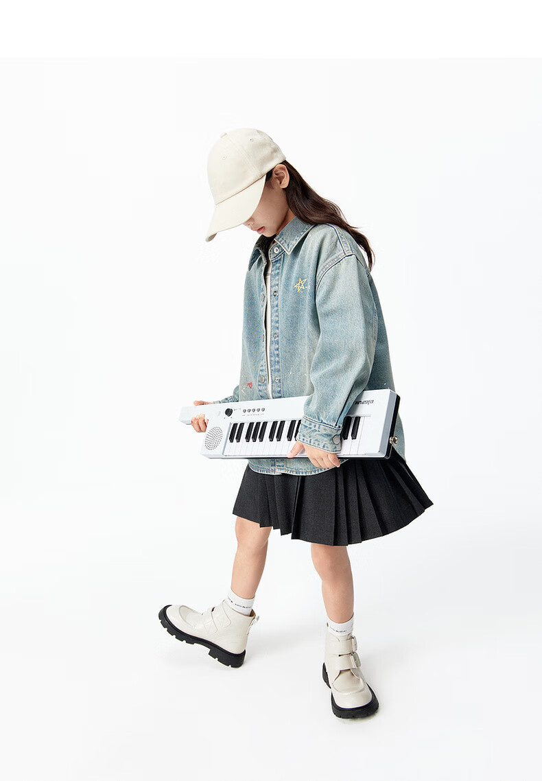 Little MO&Co. Show same style little moco children's clothing 26 new children's pony pure cotton denim shirt long-sleeved parent-child denim blue 140 140/68