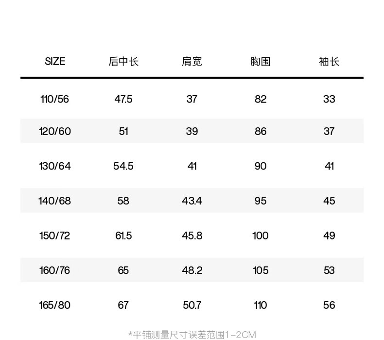 China (cm) 160-165/84-86 165-170 / 88-90 167-172 / 92-96 168-173 / 98-102 170-176 / 106-110