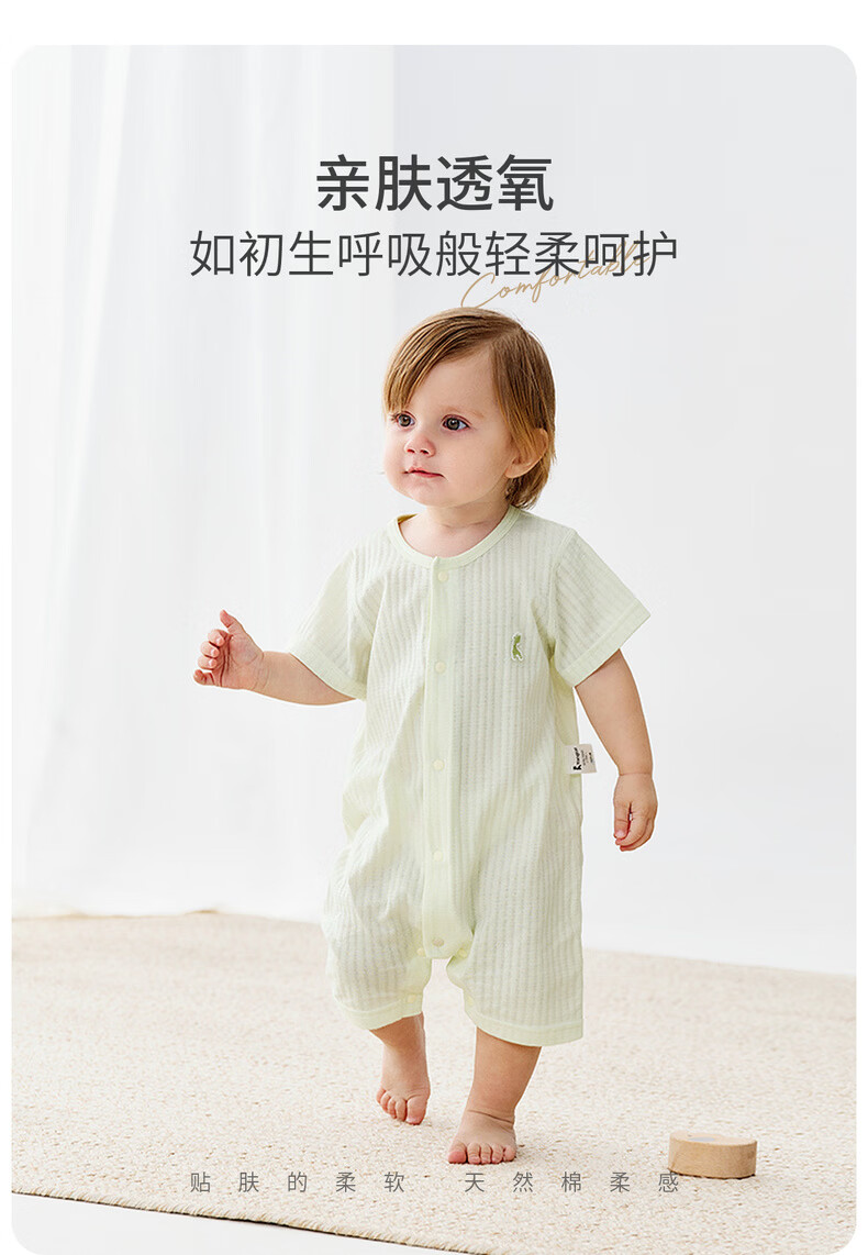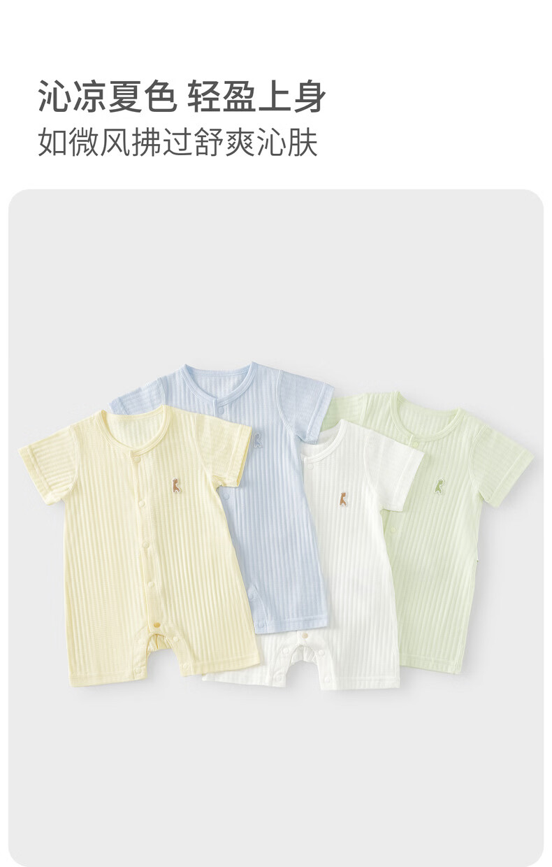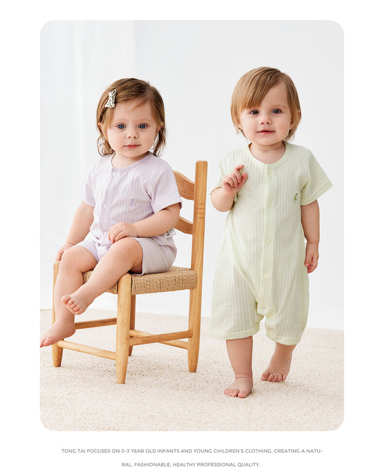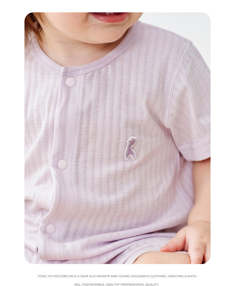Tongtai (TONGTAI) baby short-sleeved jumpsuit summer pure cotton baby clothes for boys and girls, romper pajamas, jacquard summer clothes, blue 66cm