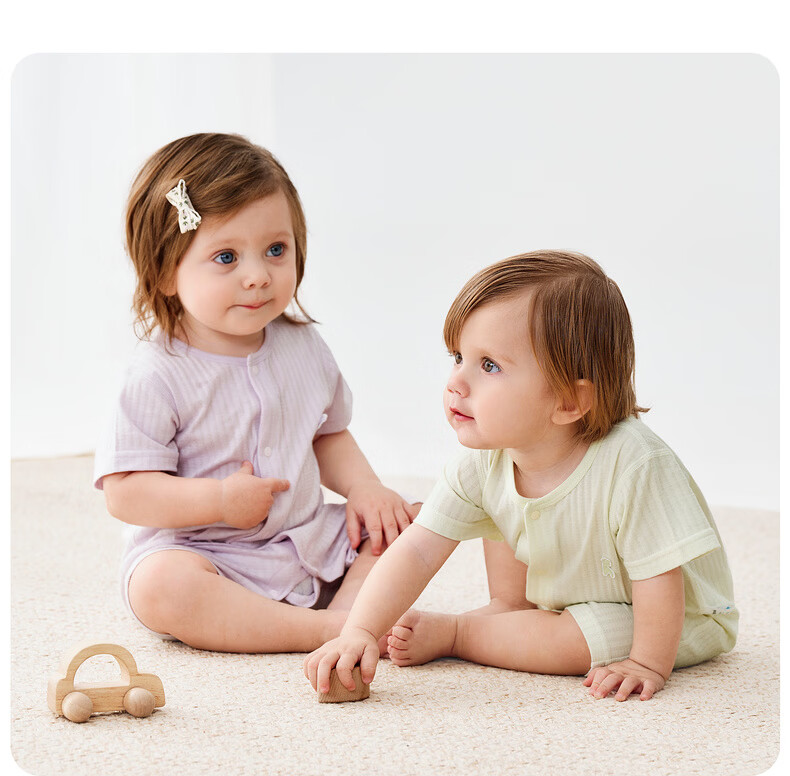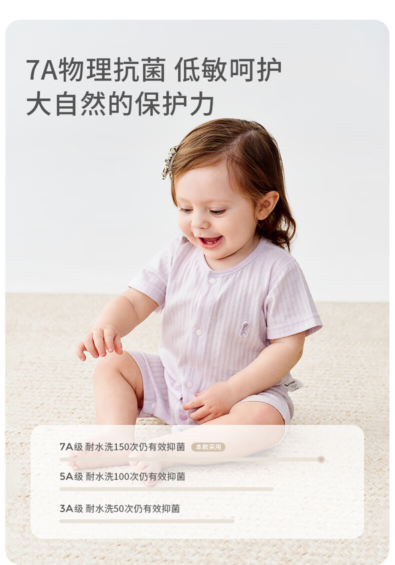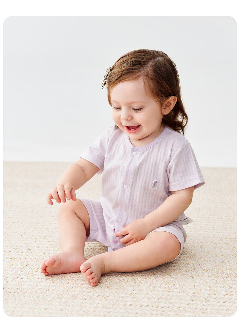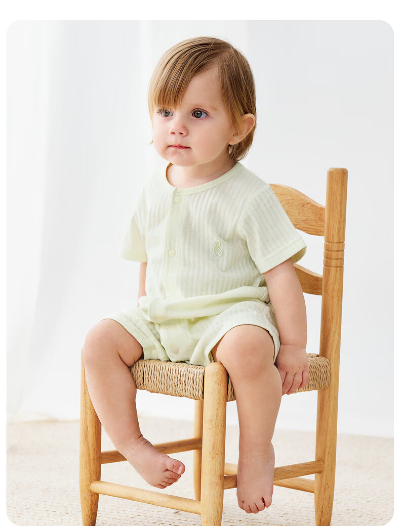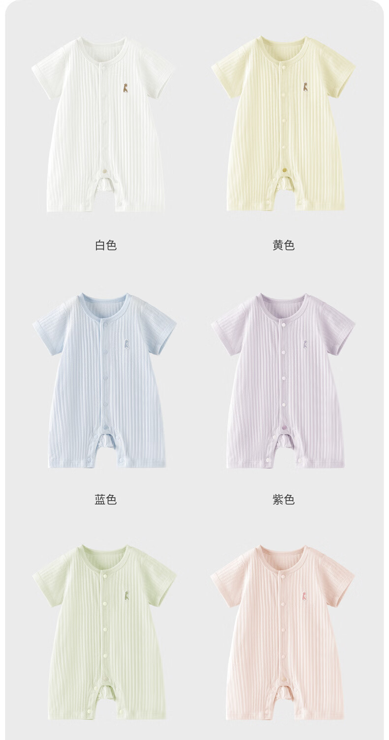 Tongtai (TONGTAI) baby short-sleeved jumpsuit summer pure cotton baby clothes for boys and girls, romper pajamas, jacquard summer clothes, blue 66cm