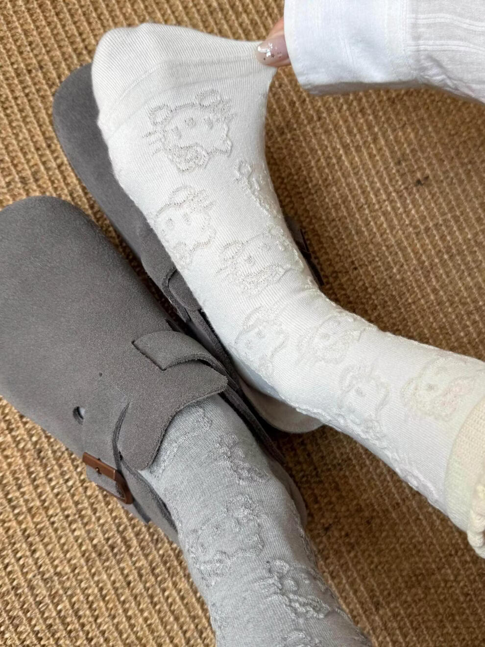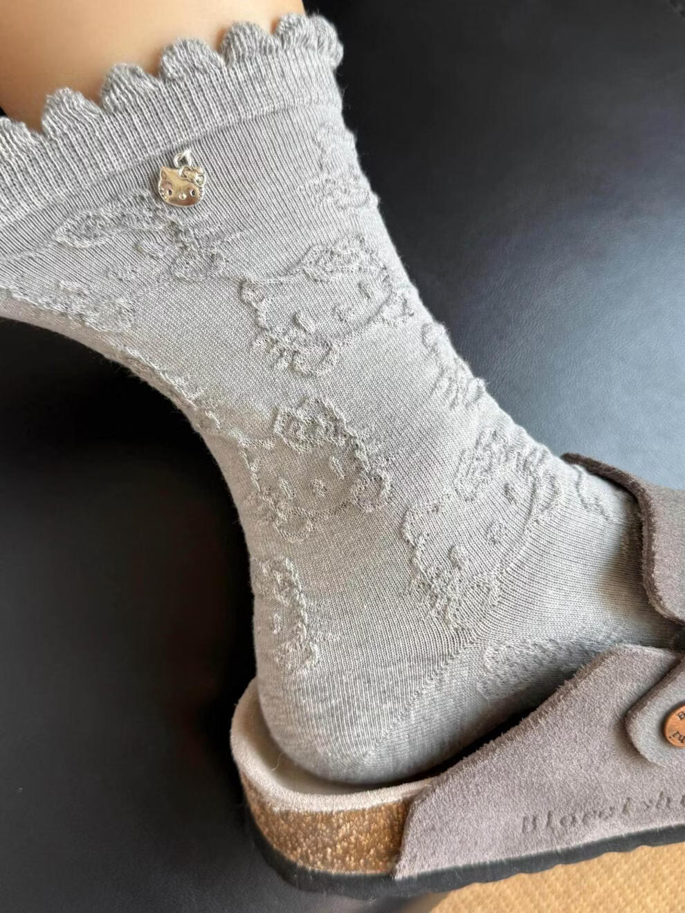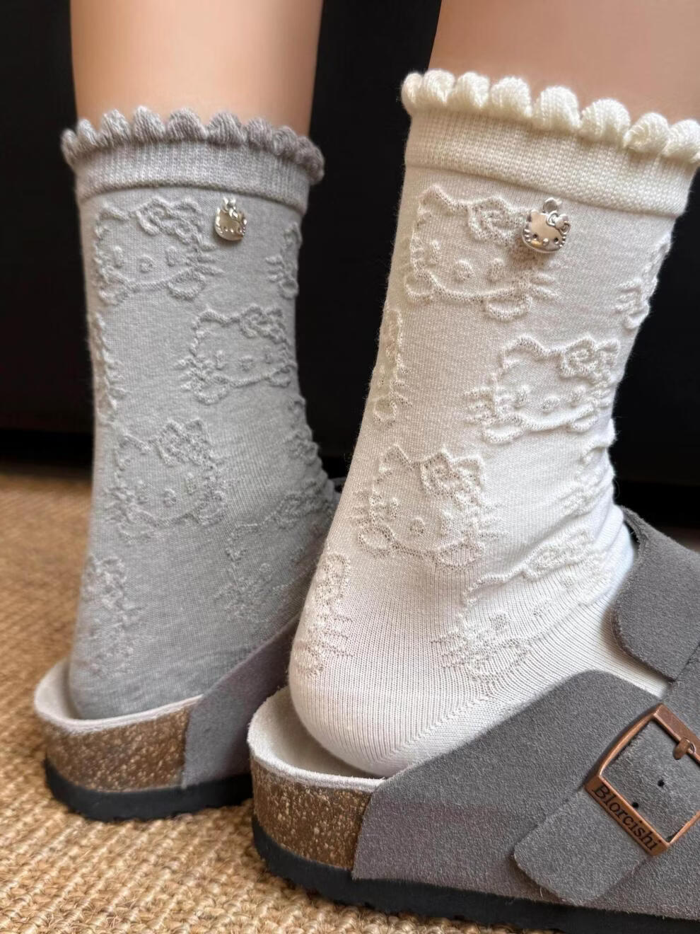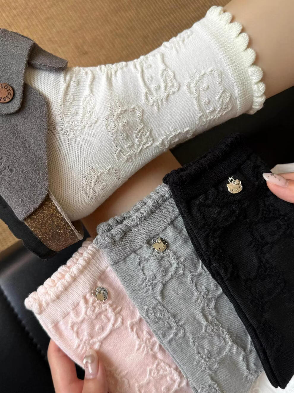 Modal Hello Kitty Socks Women's Lace Pile Socks Cartoon Pendant Socks Japanese Cute Spring and Autumn Mid-Tube Socks Black + Pink One Size Women's 35-40 Embossed Kitty