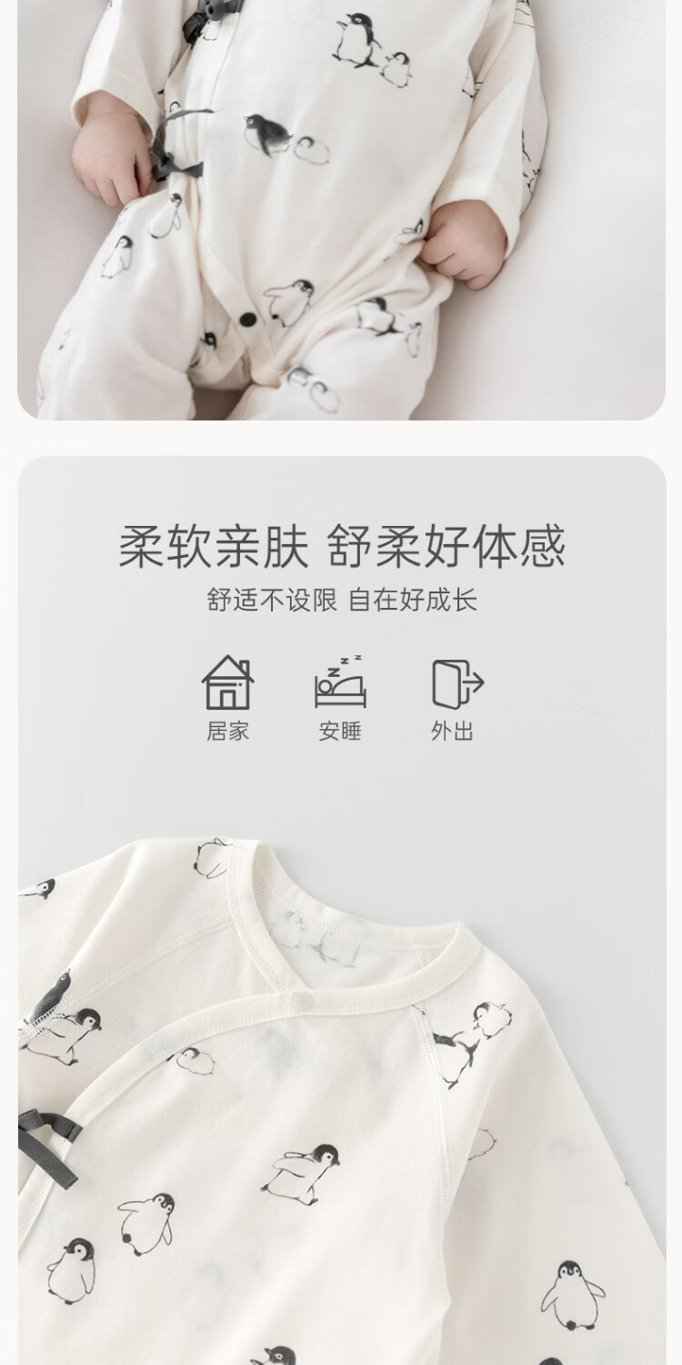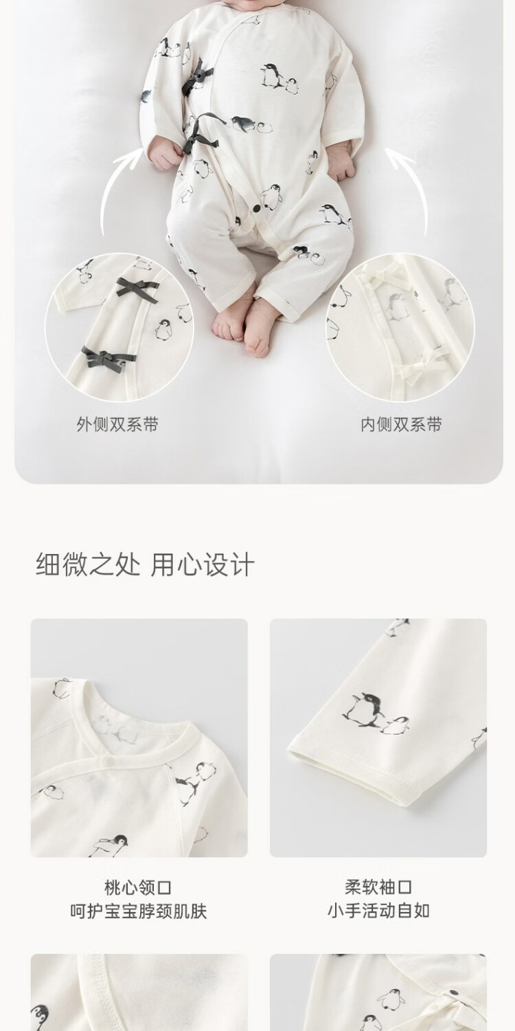 Wooden cotton newborn long-sleeved jumpsuit summer thin baby robe newborn baby pure cotton antibacterial monk clothing summer dress goose yellow little penguin 100% cotton summer style 66cm