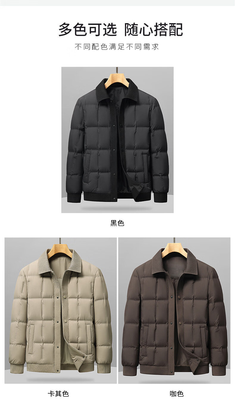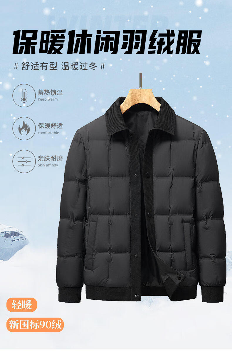 JEEP SPIRIT Jeep Men's Down Jacket 2025 Winter New Duck Down Jacket Jacket Business Casual Iron-Free Lapel Jacket Brown 2XL Recommended 155-170 Jin Jin equals 0.5 kg