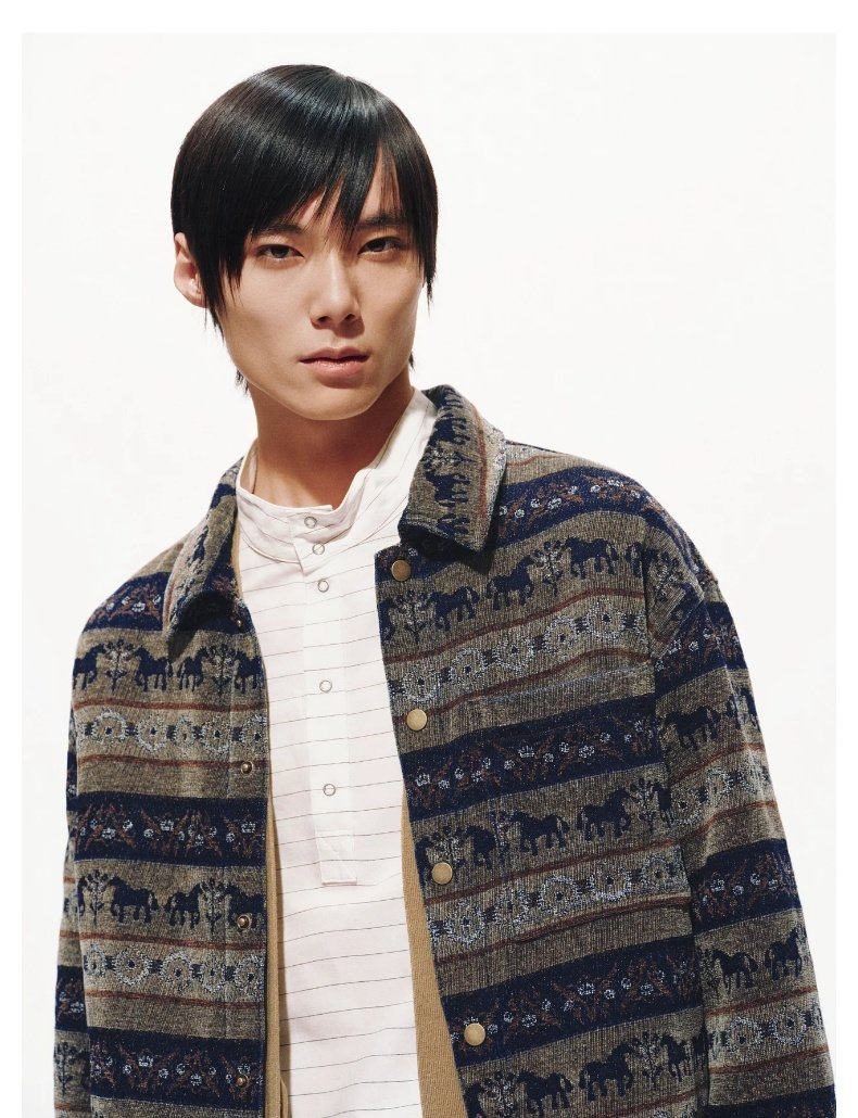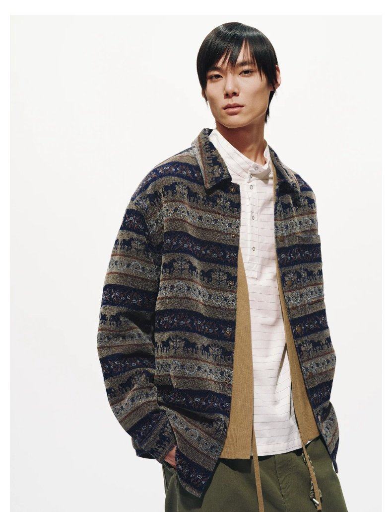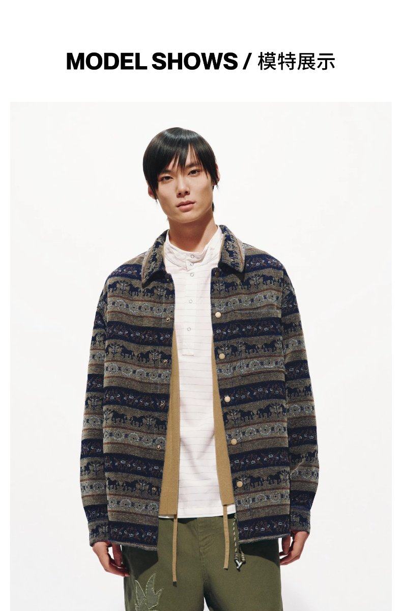 UR2026 spring new men's retro ethnic style horse pattern jacquard casual shirt UML860010 multi-color M