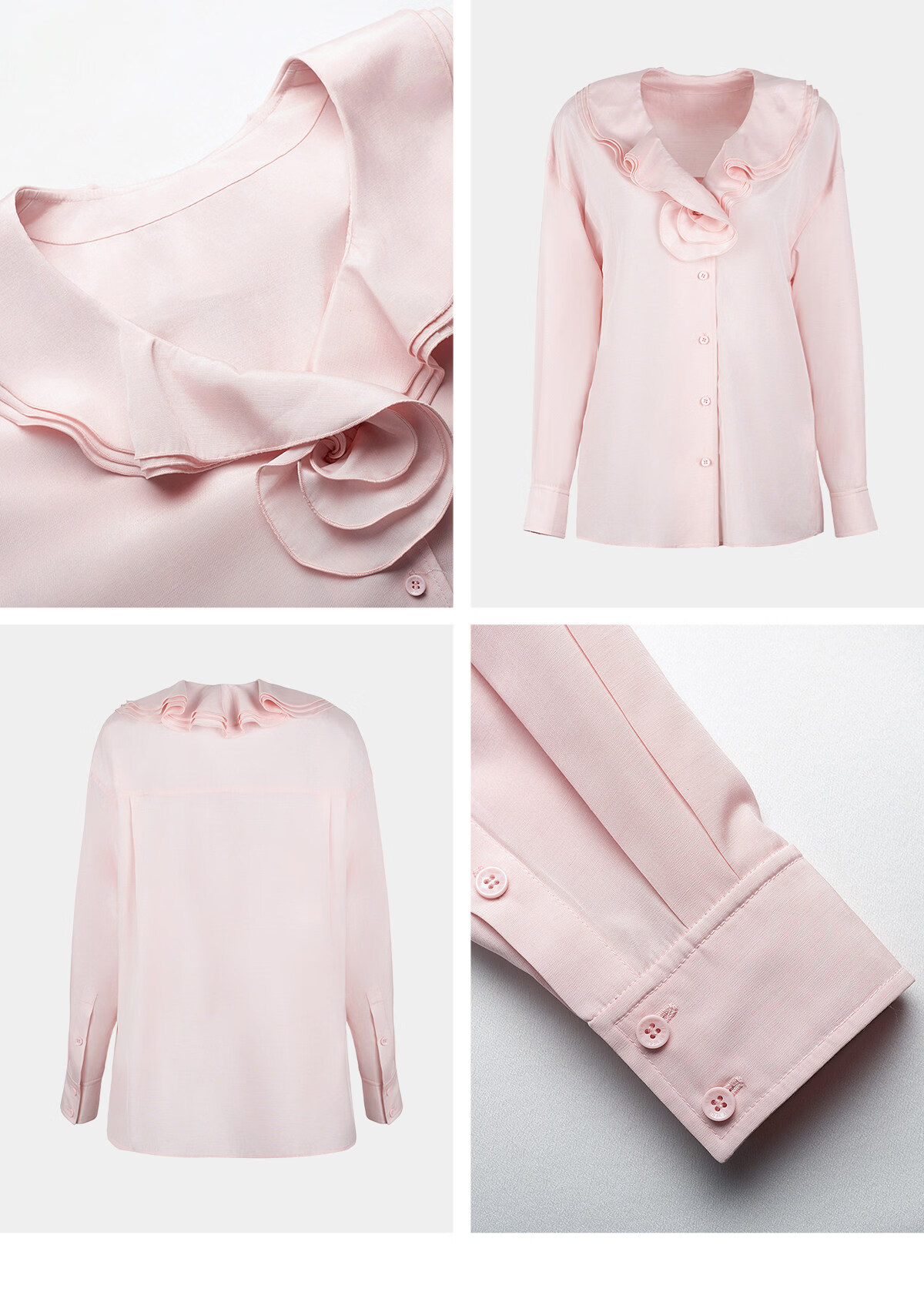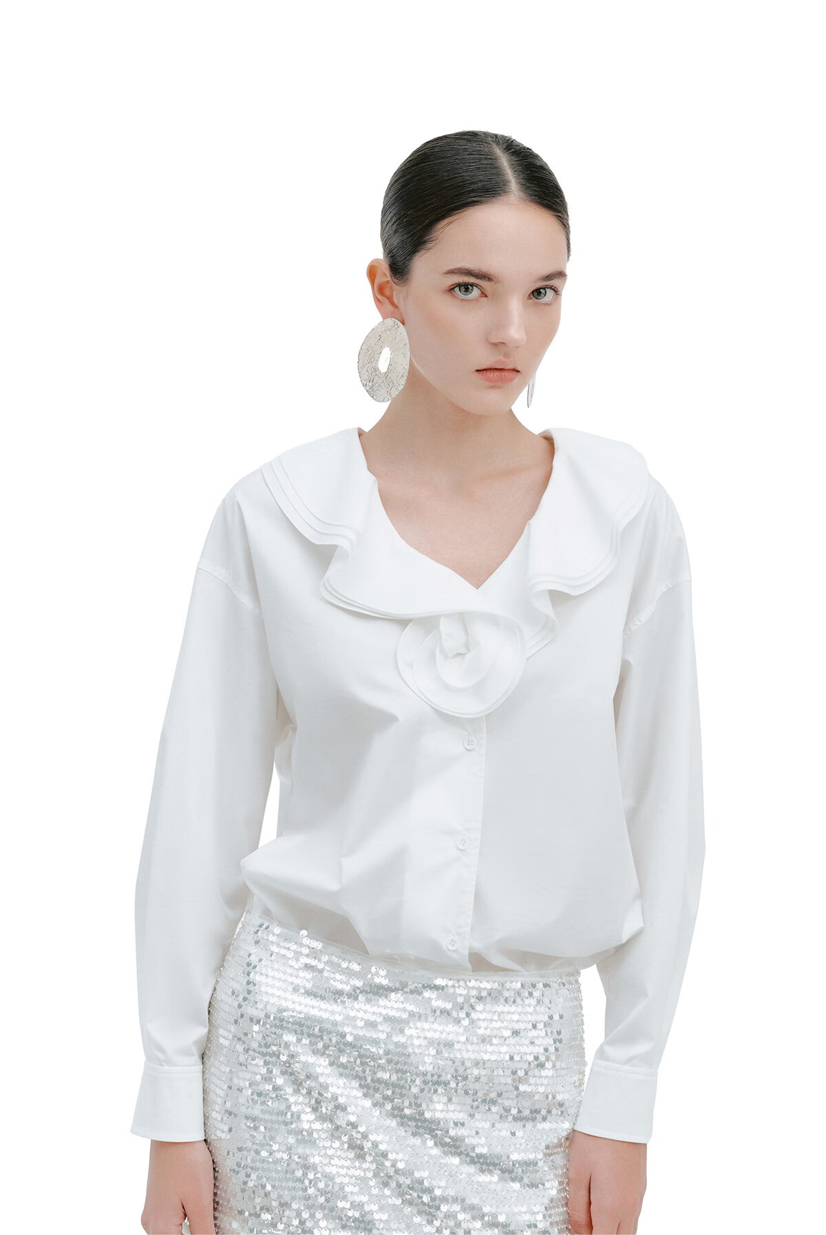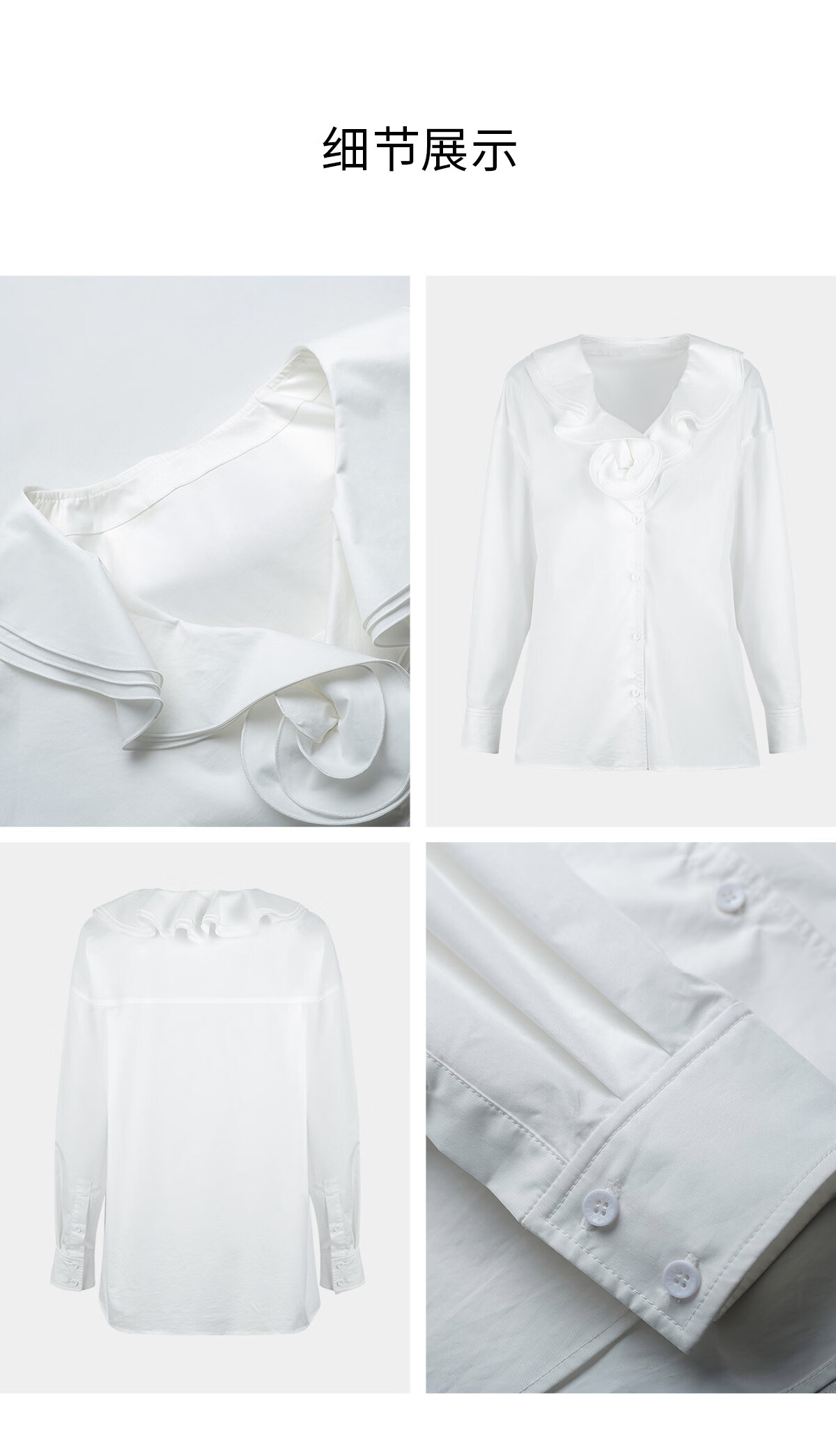 YES BY YESIR Ye Qian original designer 2026 spring new style Roselle lotus leaf collar plate flower long-sleeved shirt white S