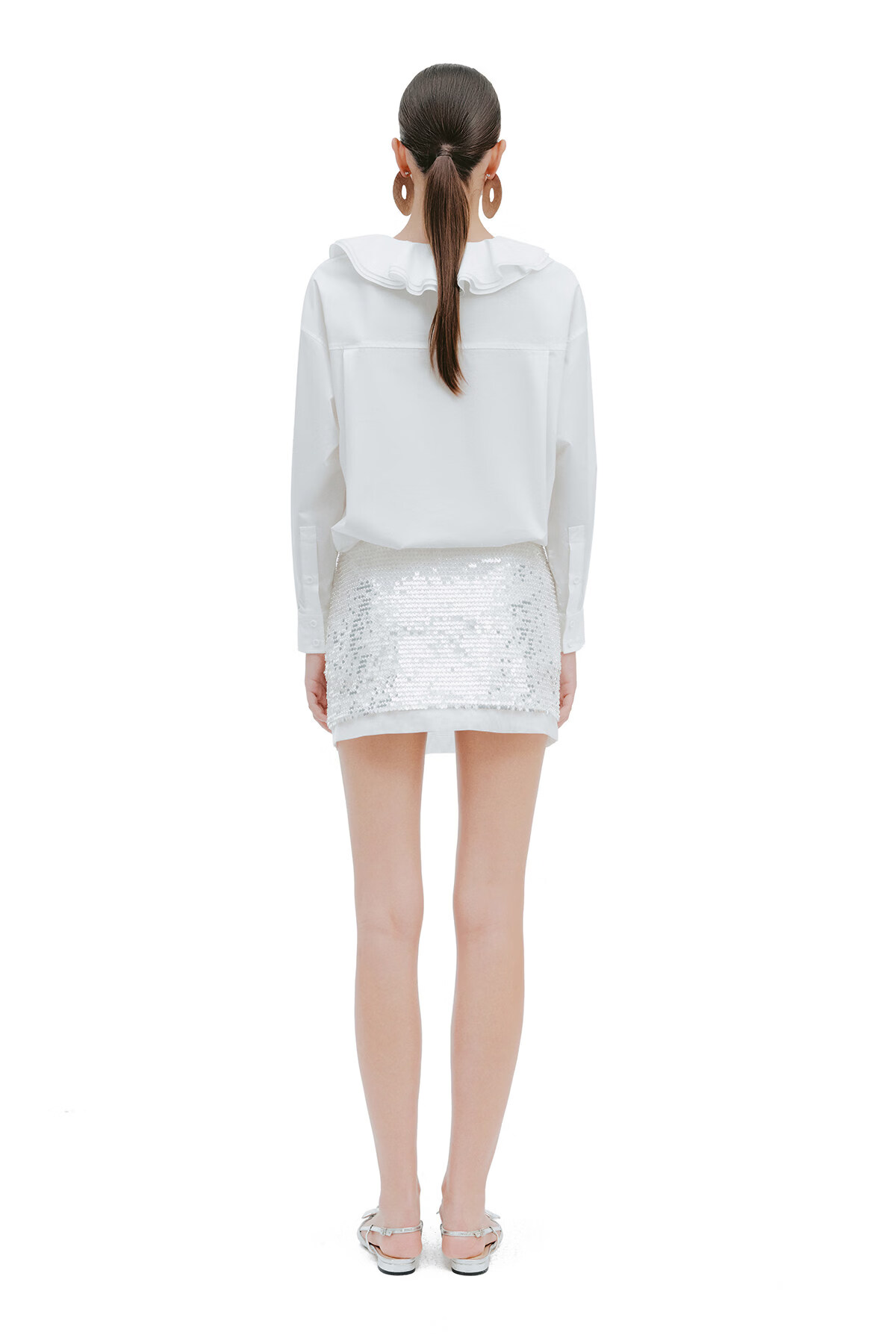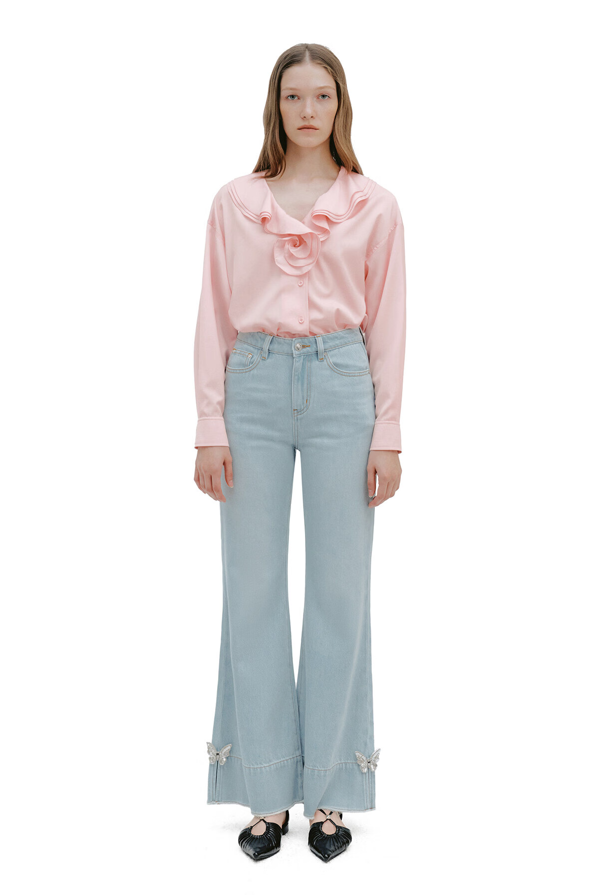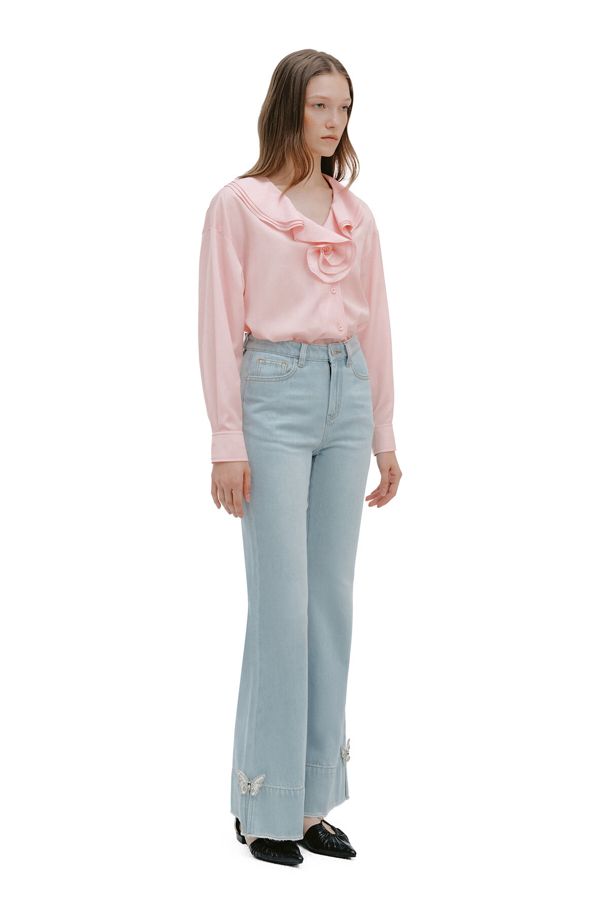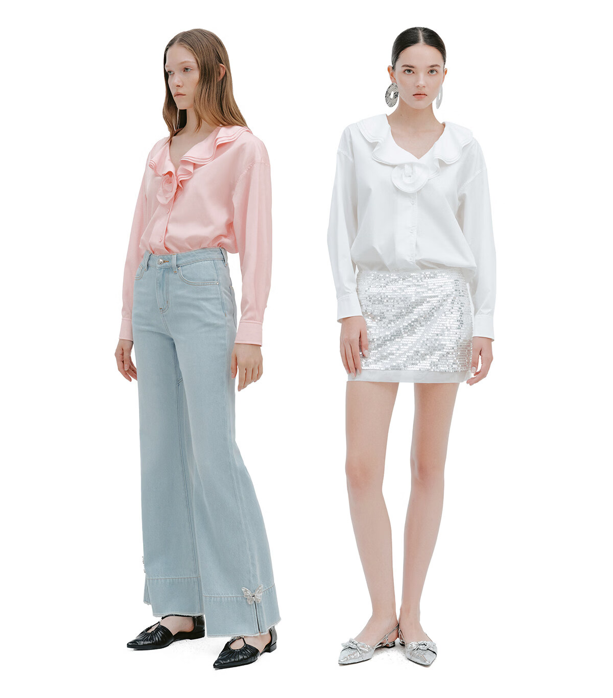 YES BY YESIR Ye Qian original designer 2026 spring new style Roselle lotus leaf collar plate flower long-sleeved shirt white S