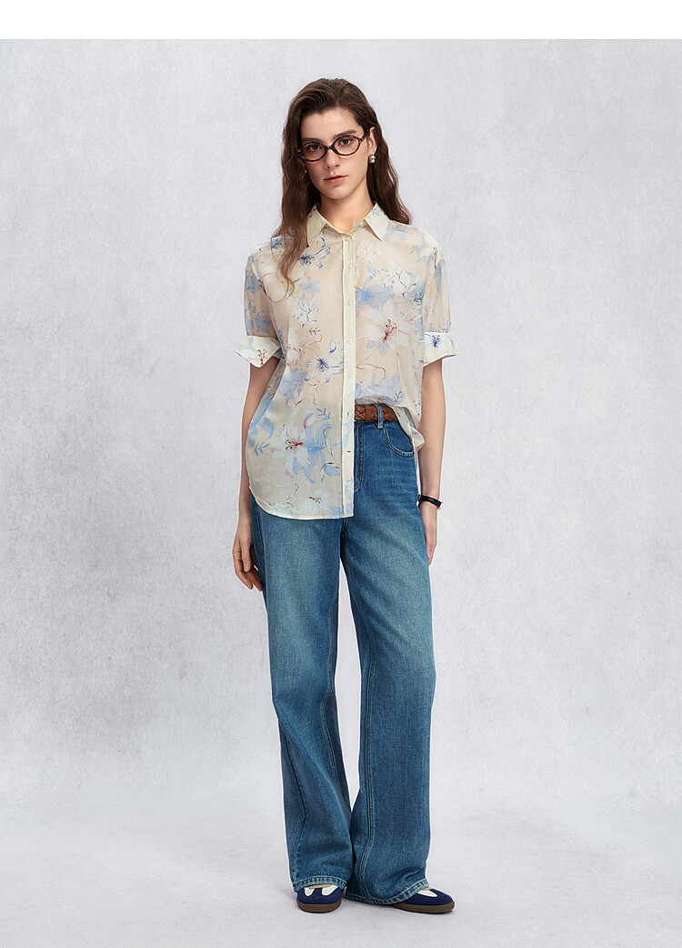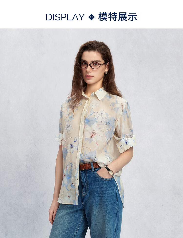 GANT/GANT spring and summer new women's classic commuter fashion printed long-sleeved shirt 107-off-white S