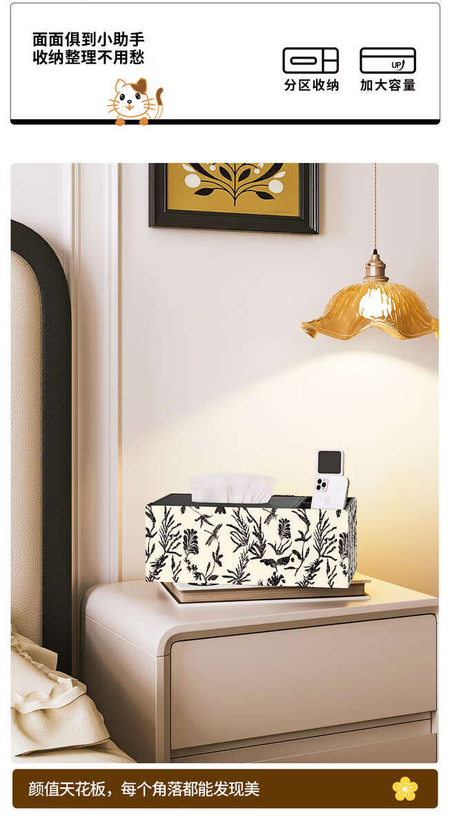 Yusenyi level tissue box for living room creative coffee table remote control storage box new style napkin paper box ZJS+27 double grid