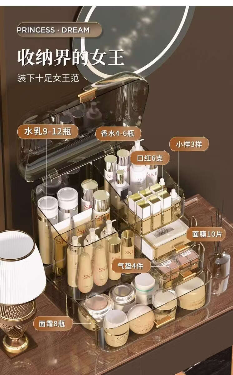 Yusenyi large-capacity product storage box dressing table dust-proof skin care product storage rack transparent color extra large storage box + SF1225