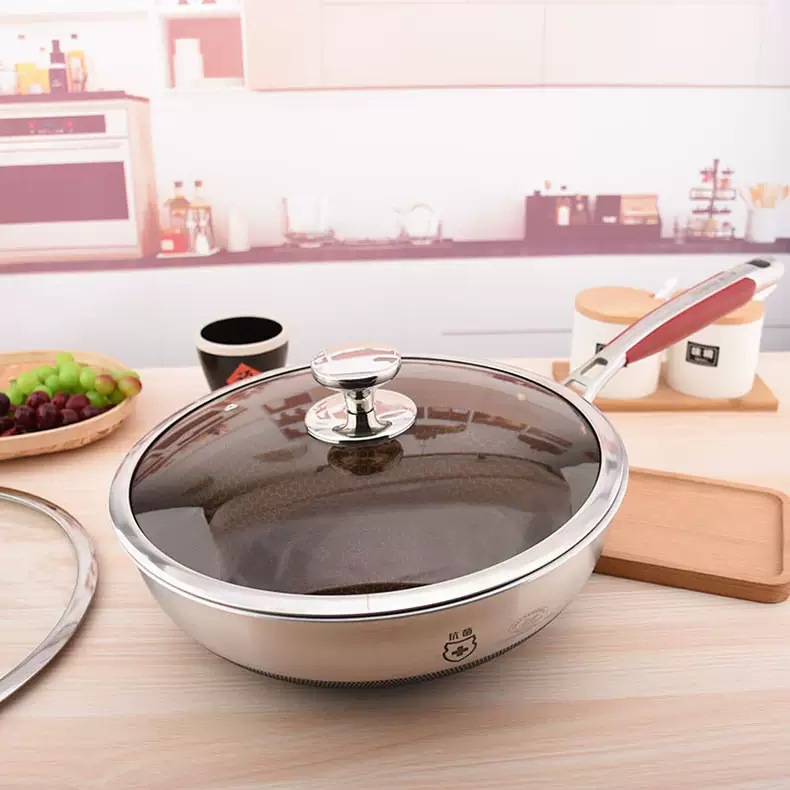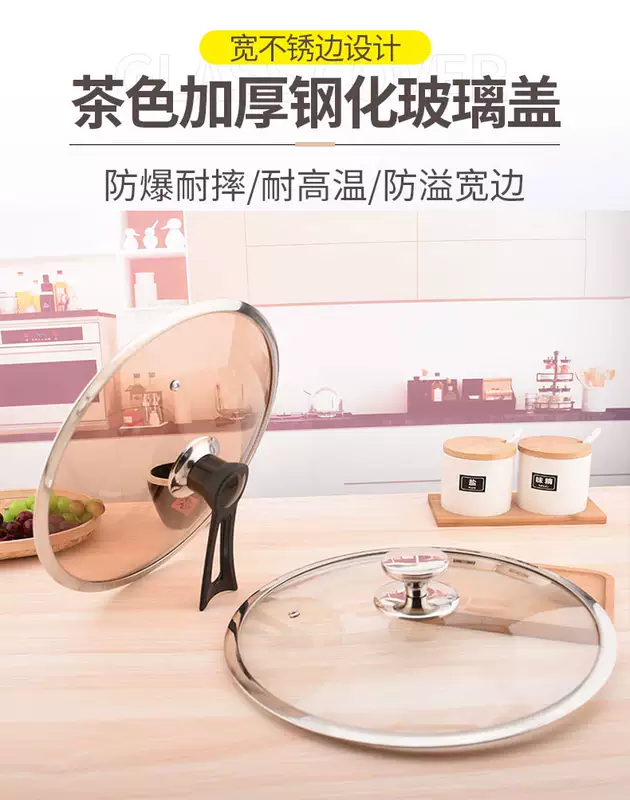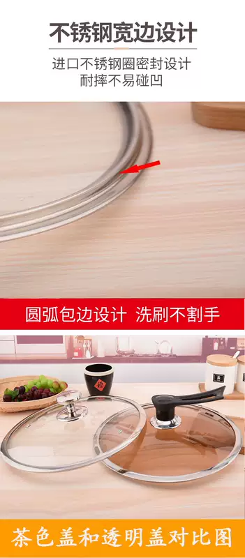 Yusenyi wide edge thickened universal non-slip tempered glass pot lid transparent brown glass lid wok steamer soup pot lid brown stainless steel handle 30cm