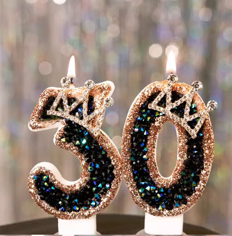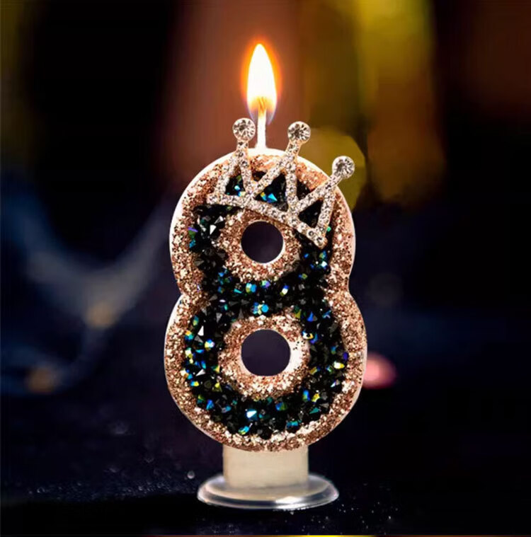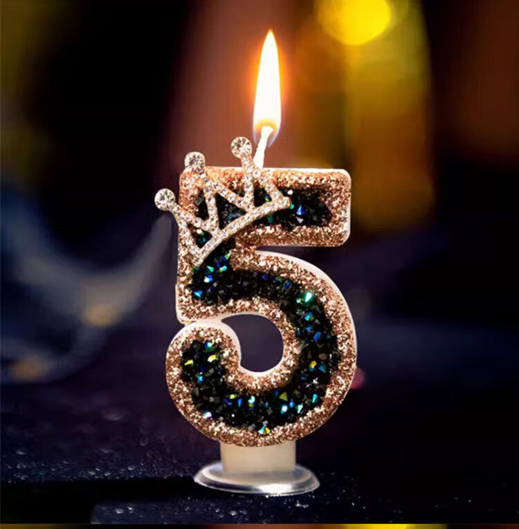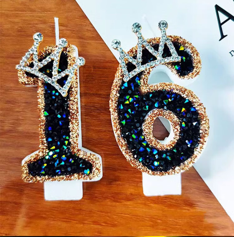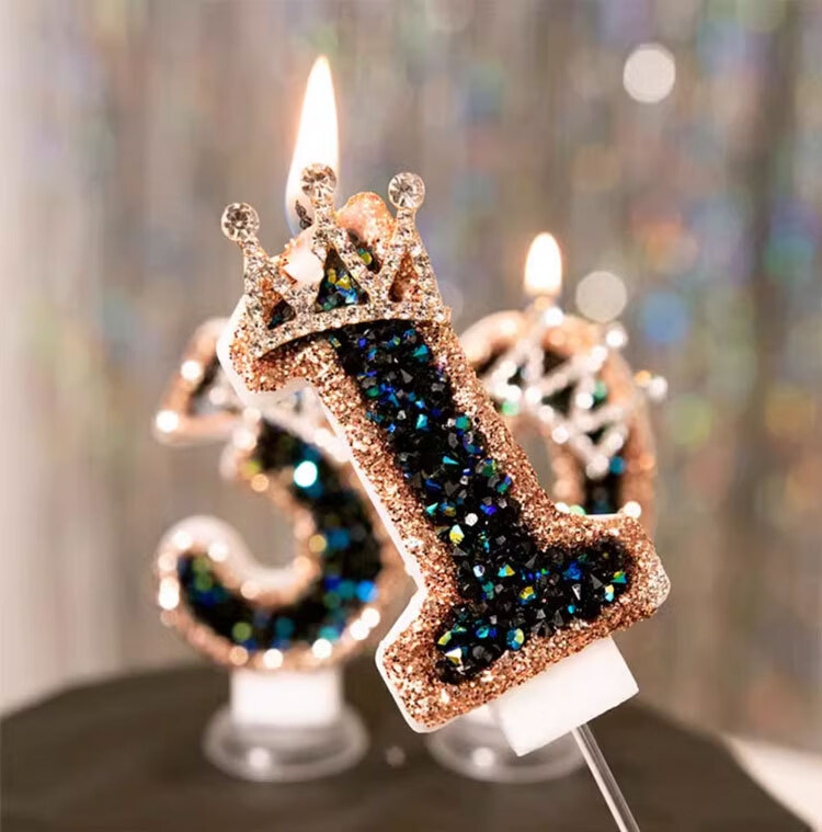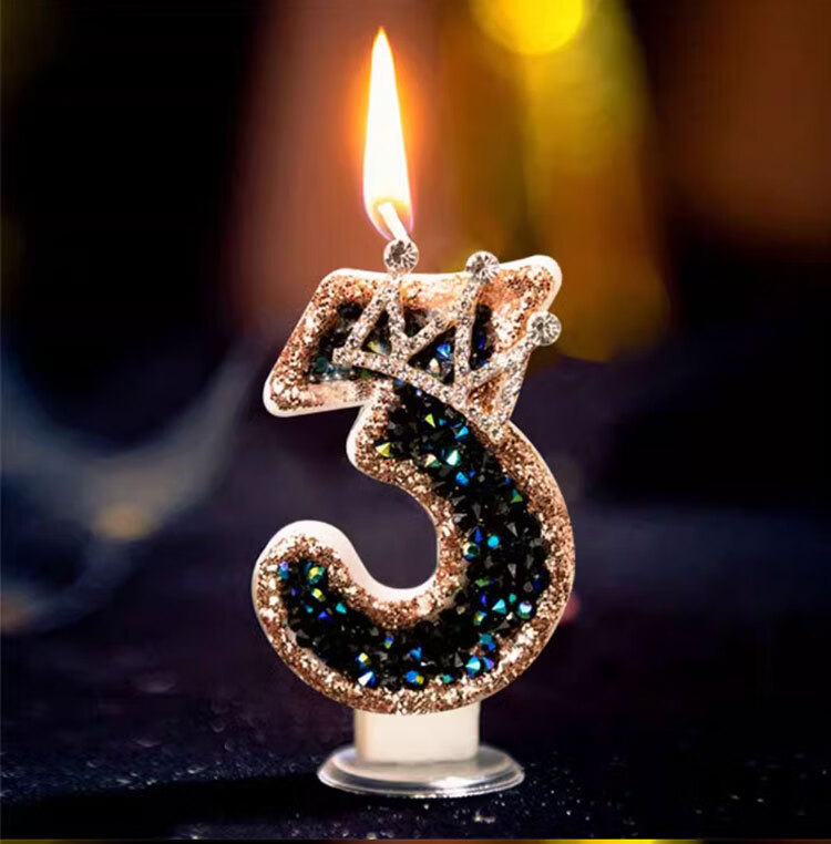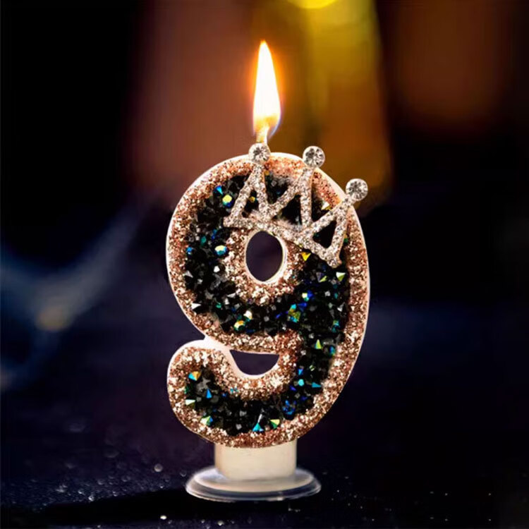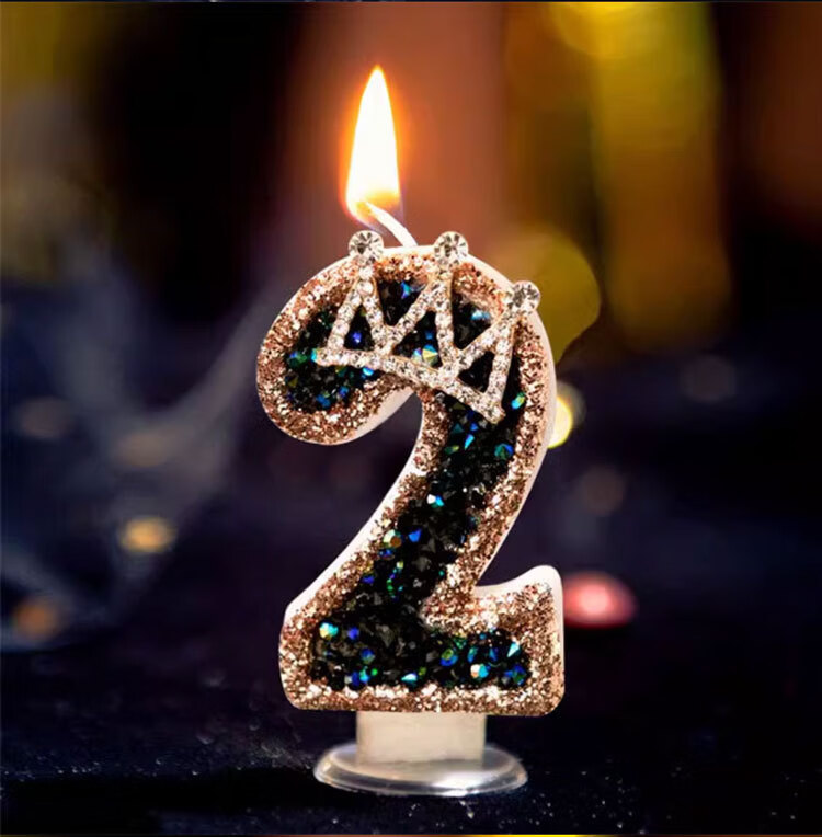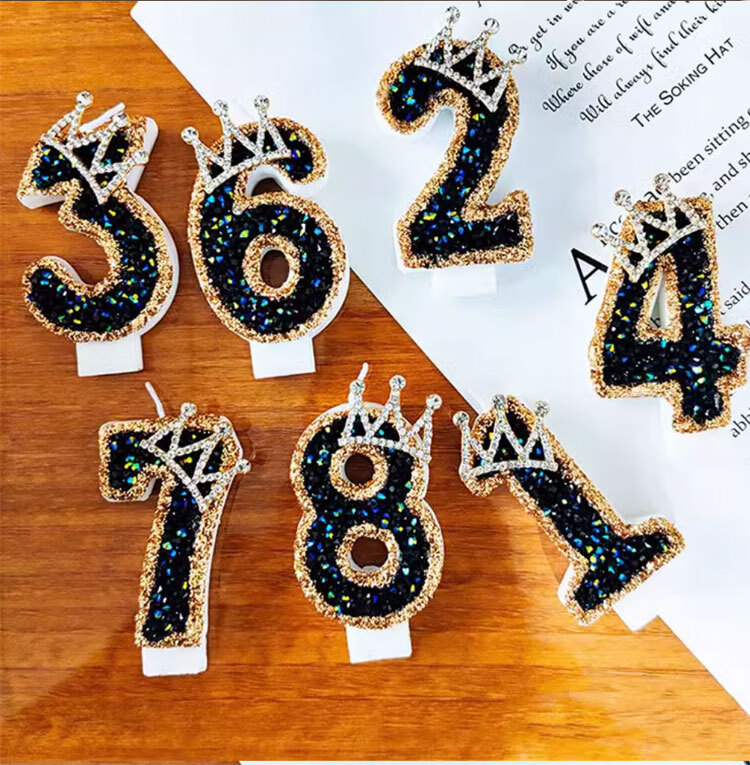 Pupan Black Diamond Crown Digital Birthday Candle Decoration Cake Insert Children's First Birthday Party Same Style Colorful Flame Candles 6 Pieces