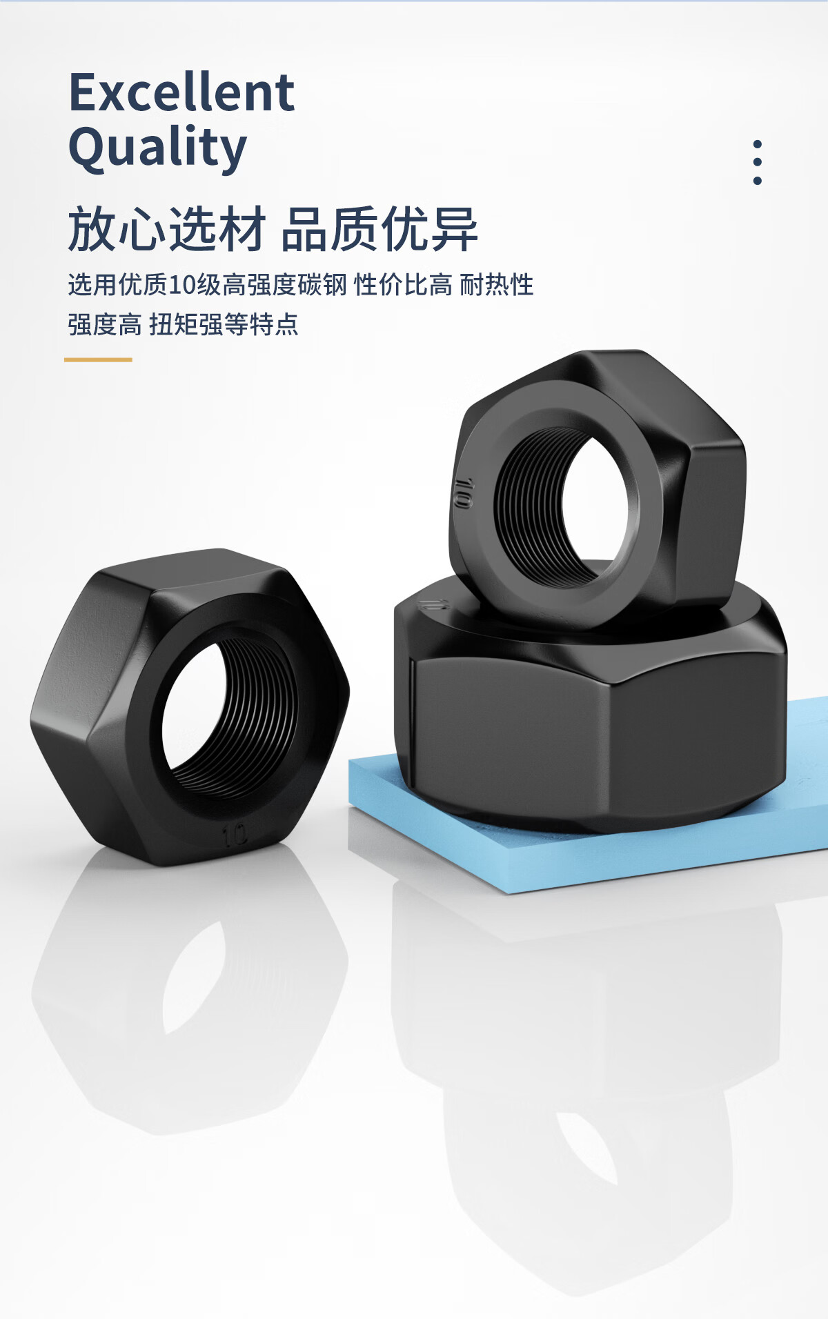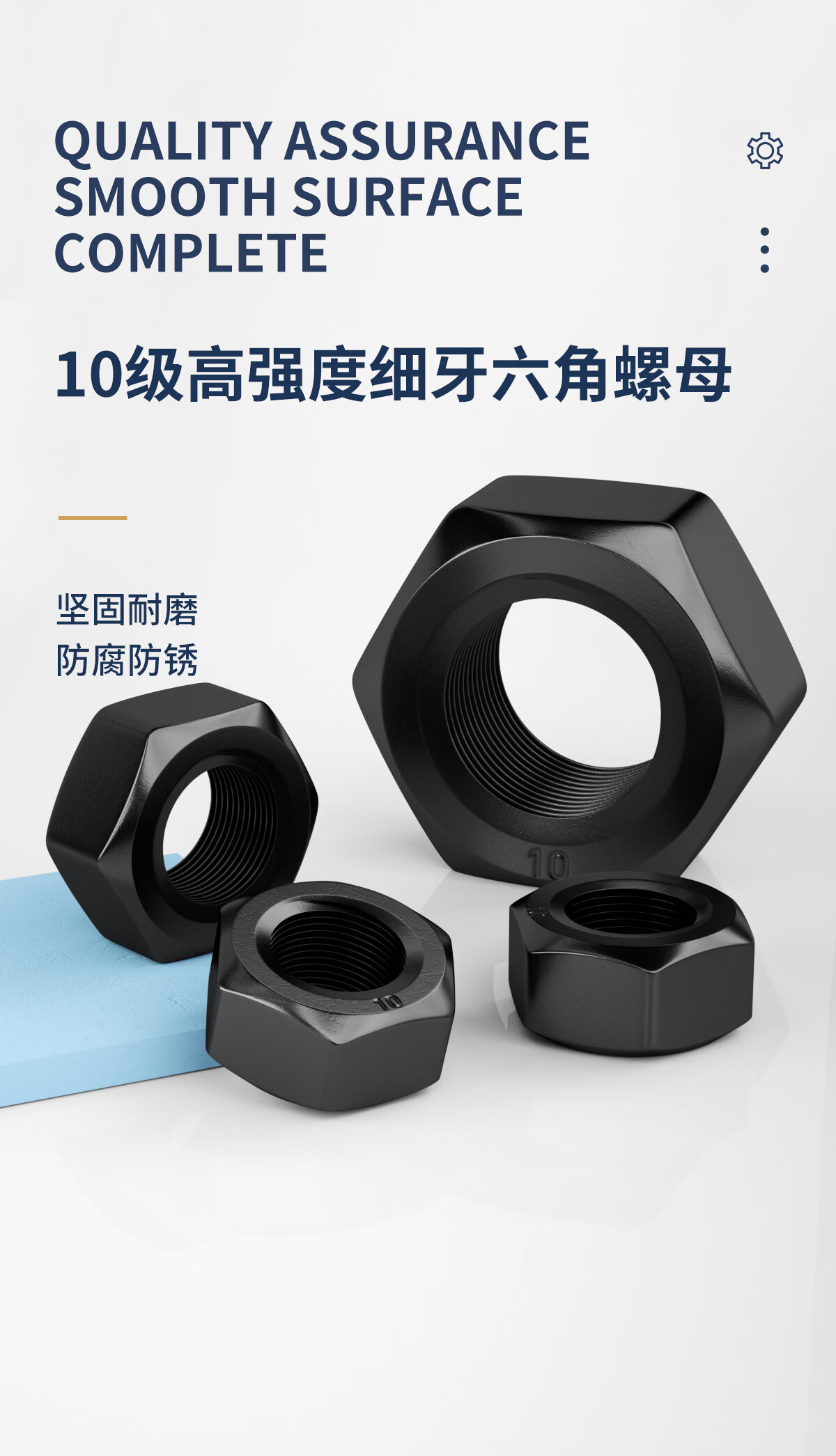 GUWANJI grade 10.9 high strength fine thread hexagonal nut fine buckle iron black nut fine thread nut M8M10M12M36mm M12x1.25 (20 pieces)