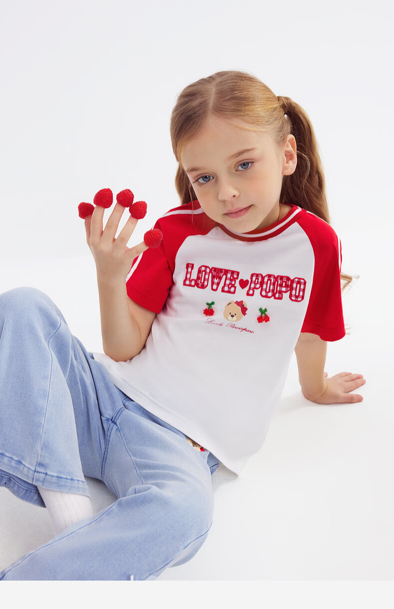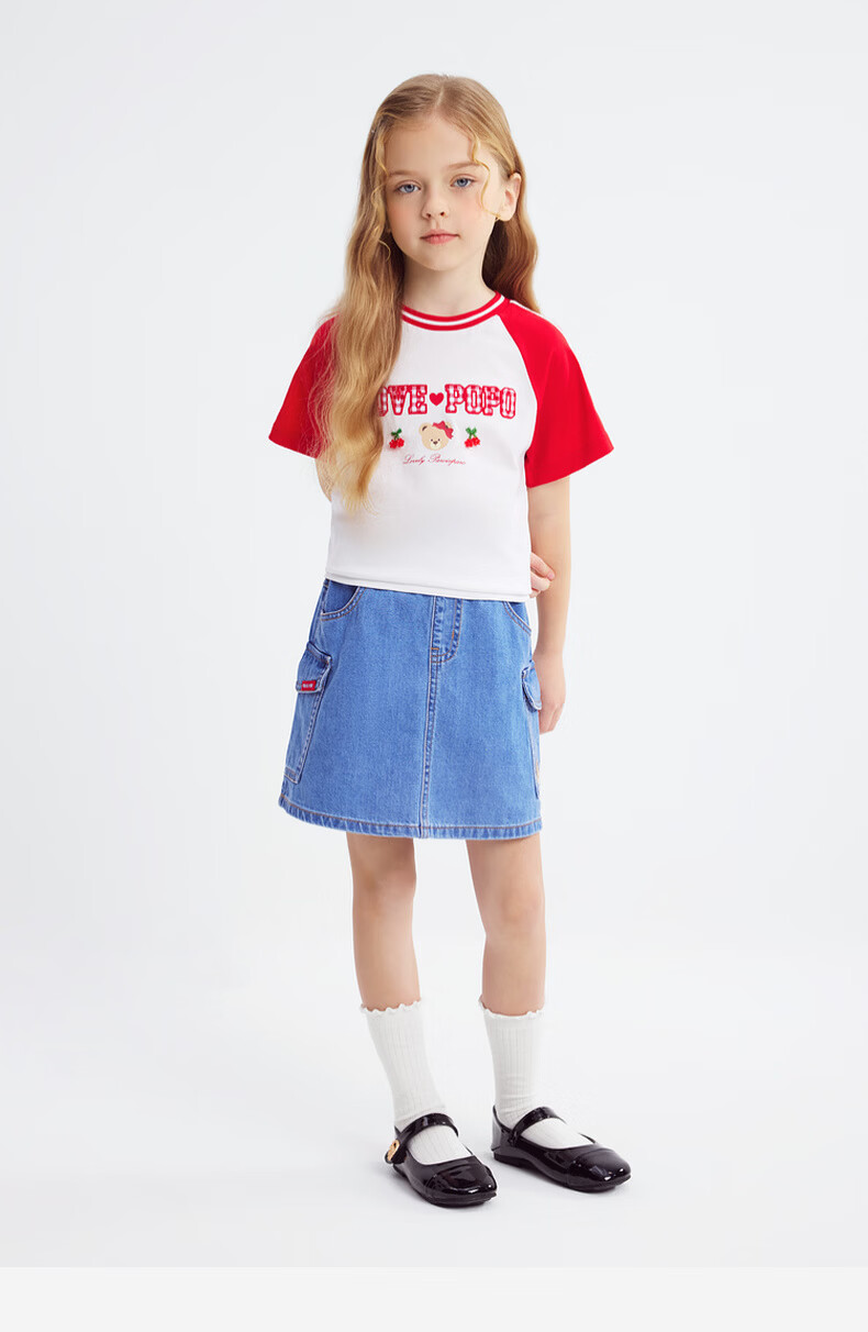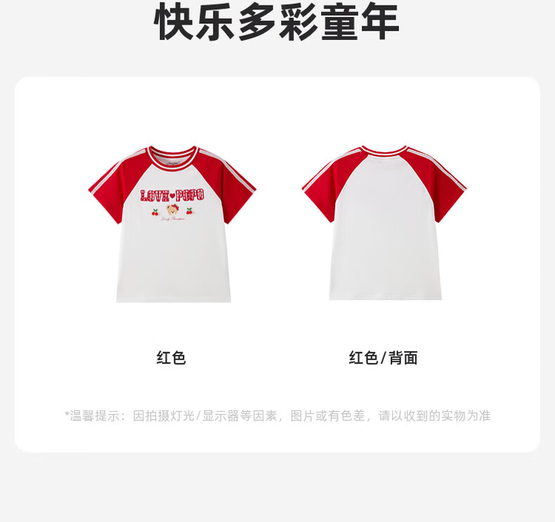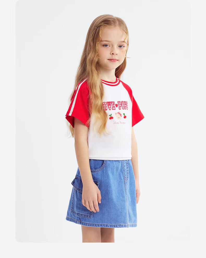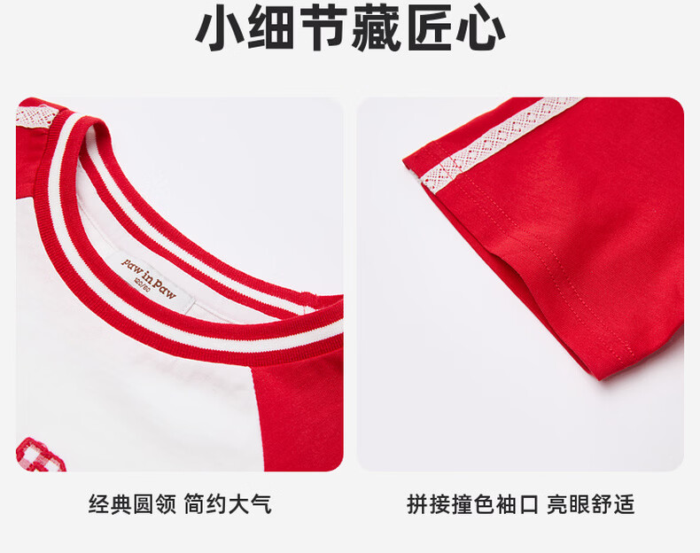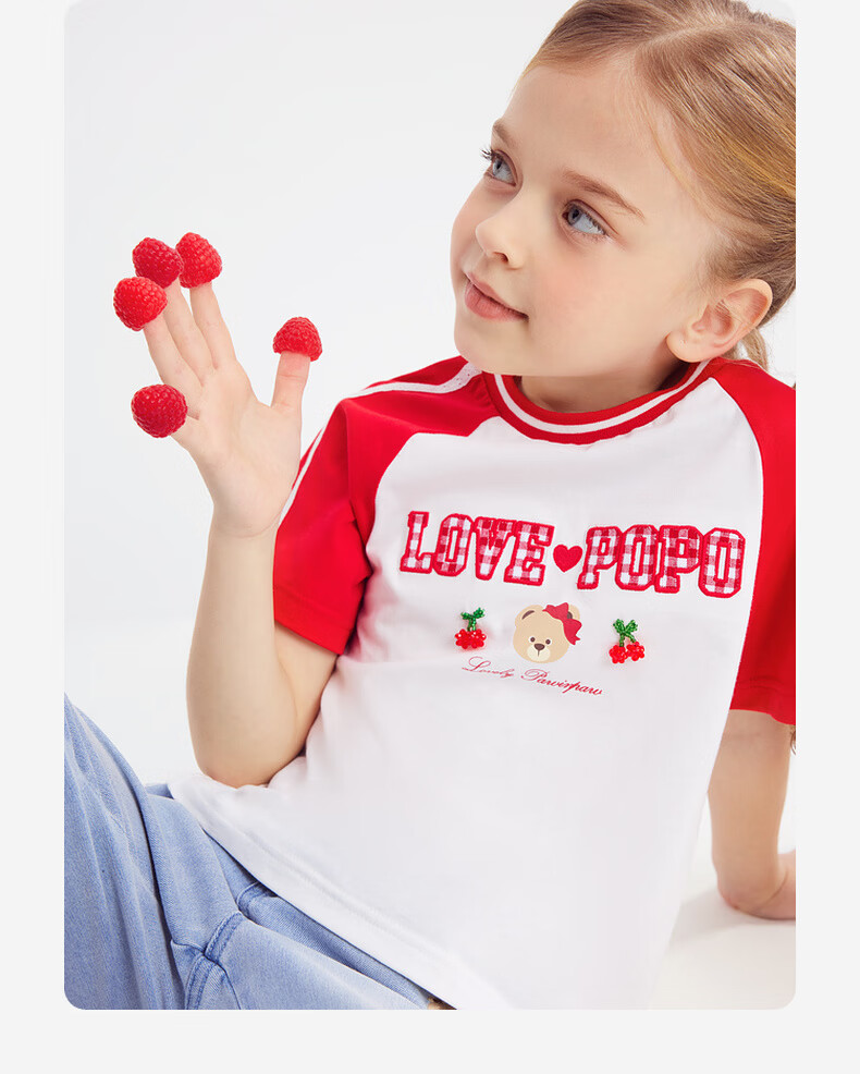 PawinPaw Cartoon Bear Children's Clothing 26th Spring and Summer New Girls Round Neck T-shirt Loose Red/20 110