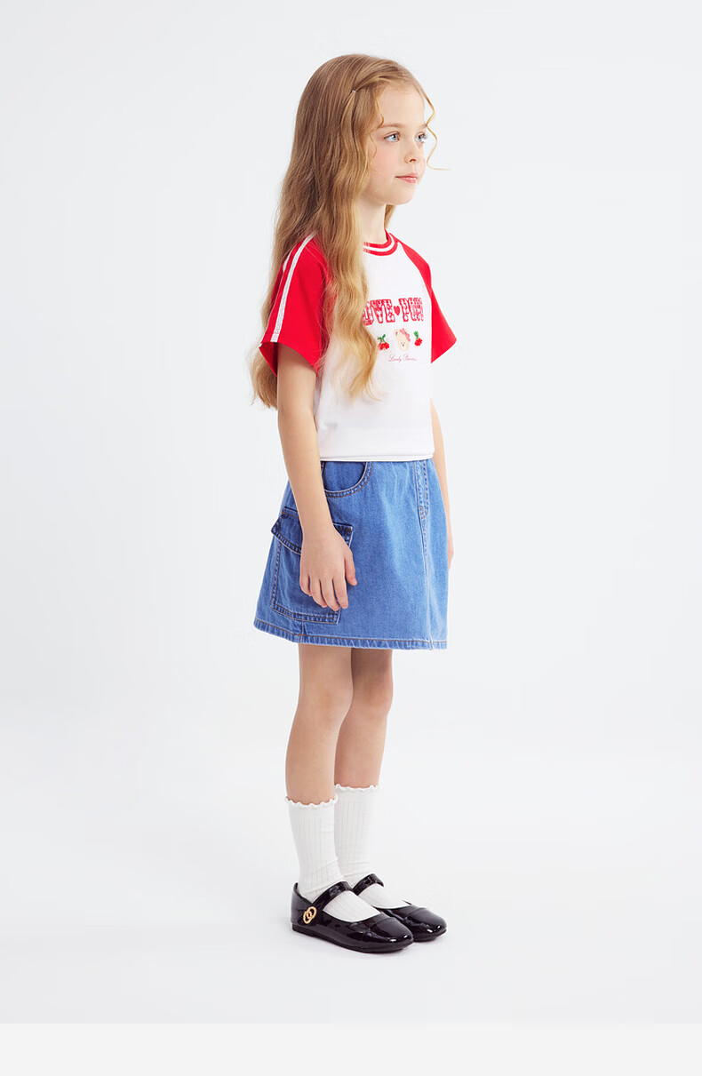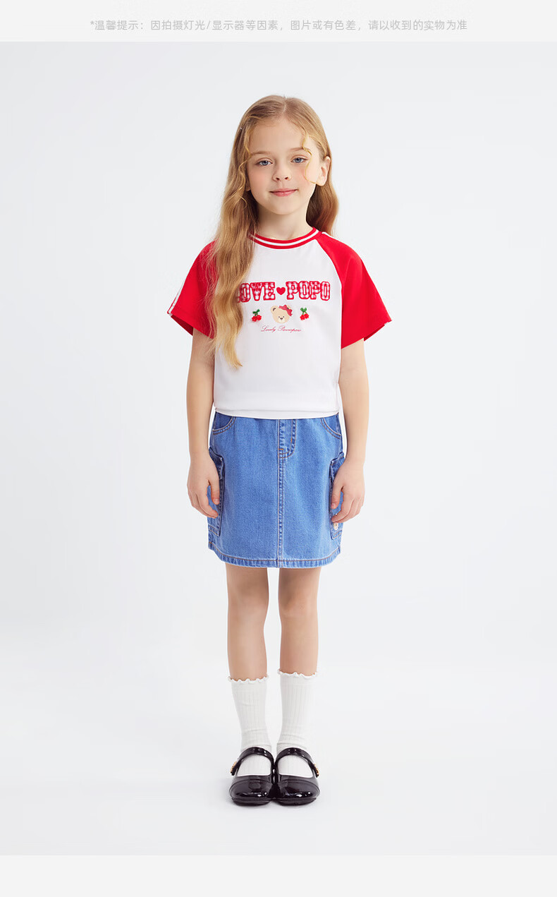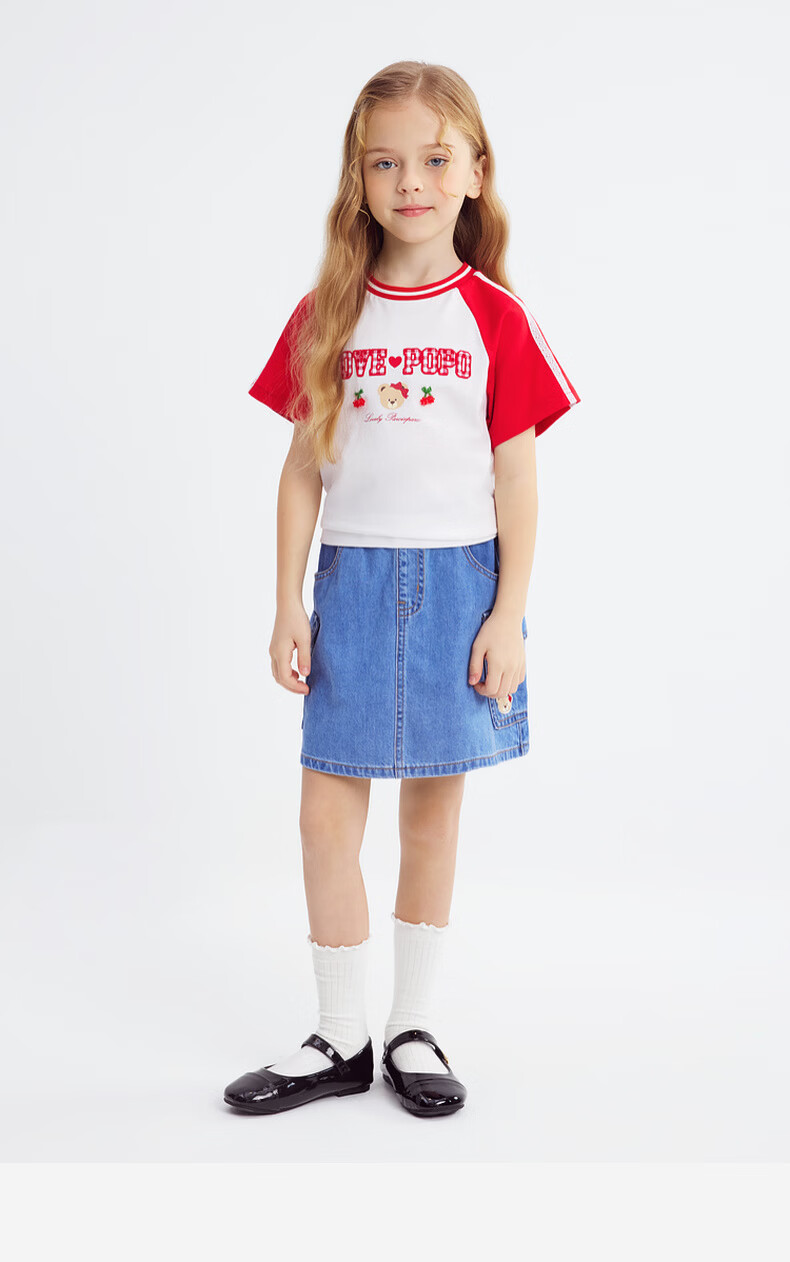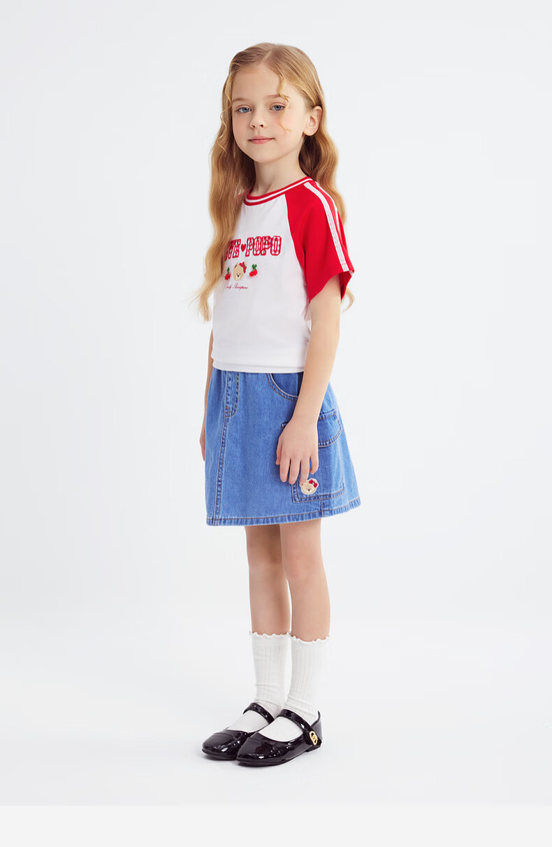 PawinPaw Cartoon Bear Children's Clothing 26th Spring and Summer New Girls Round Neck T-shirt Loose Red/20 110