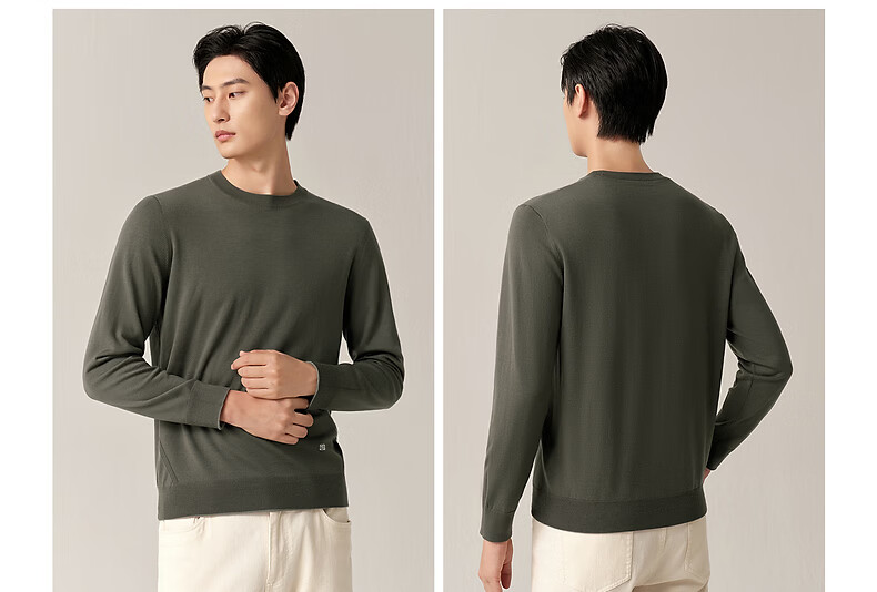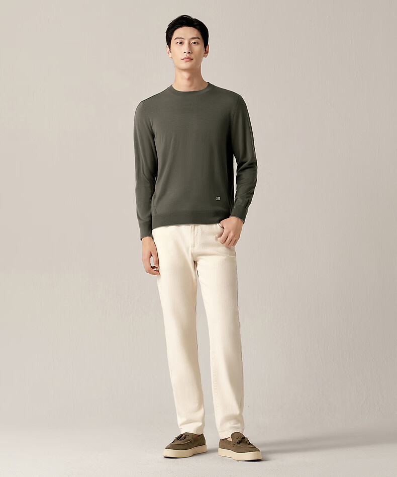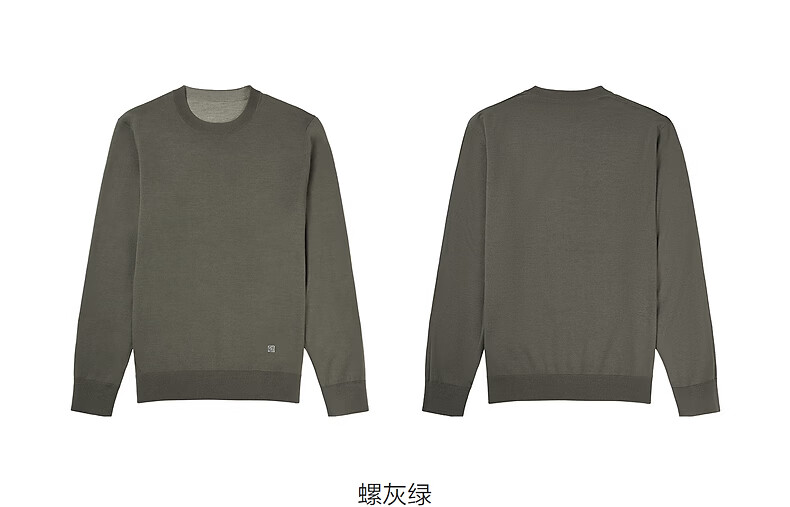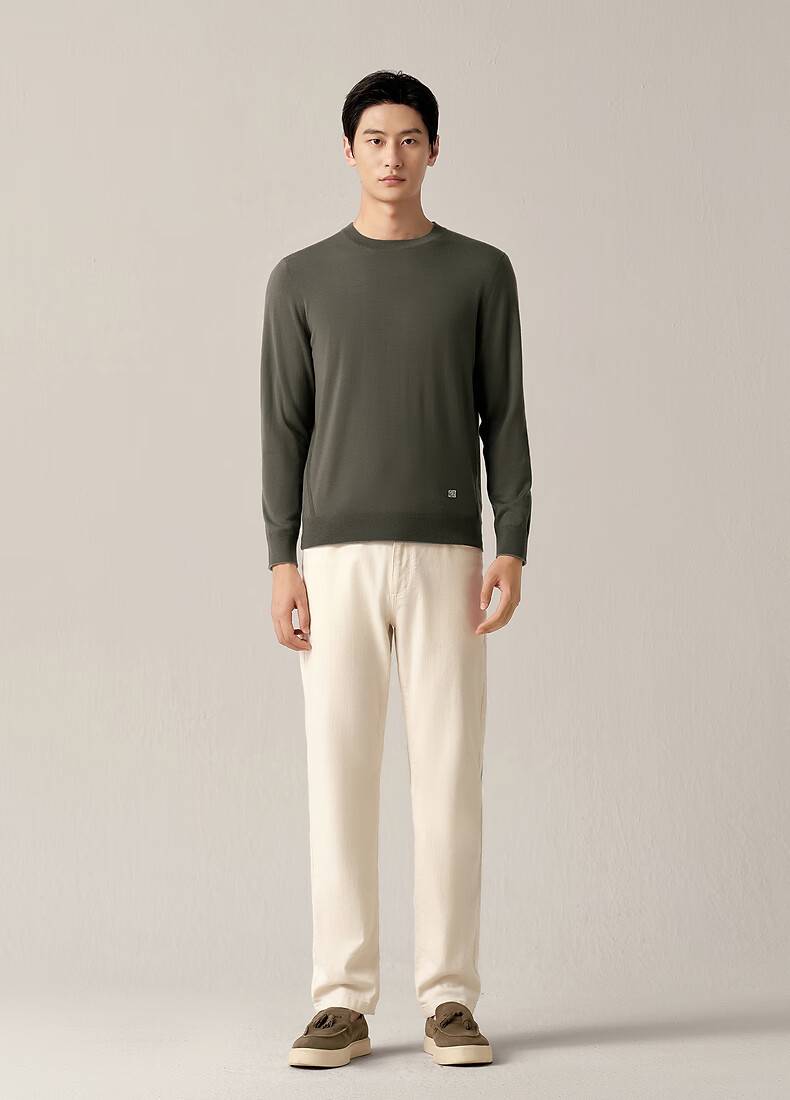 Ordos 1980 machine washable worsted wool new round neck reversible men's sweater 26 early spring snail gray green M 170/92A