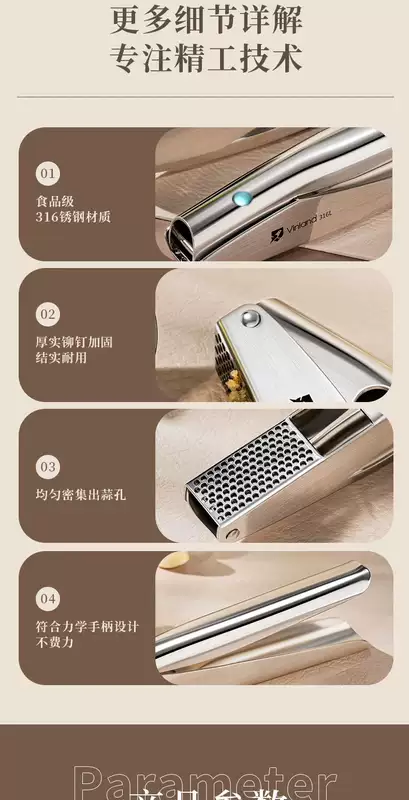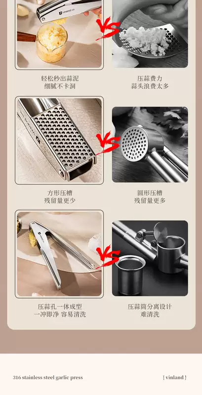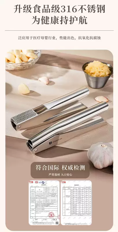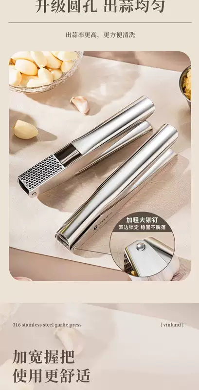 Yusenyi British 316 stainless steel garlic squeeze household manual garlic garlic garlic press 304 dozen kitchen garlic paste British Vinland high-end kitchen tools 1ml British Vinland high-end kitchen tools