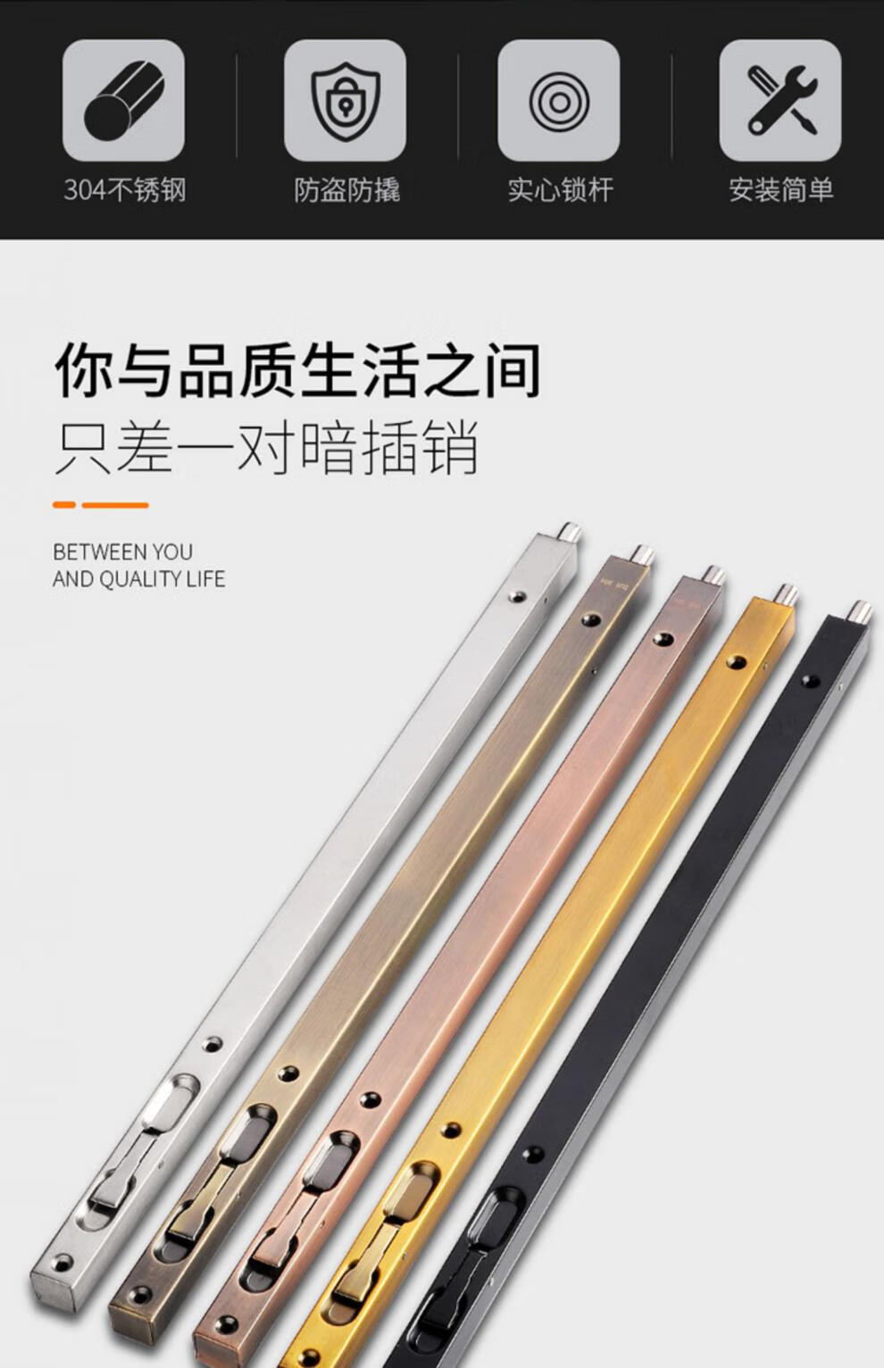 Junmo double-door wooden door concealed latch 304 stainless steel anti-theft door extended door latch upper and lower double door concealed latch 18-inch 460mm 304 stainless steel - brushed silver