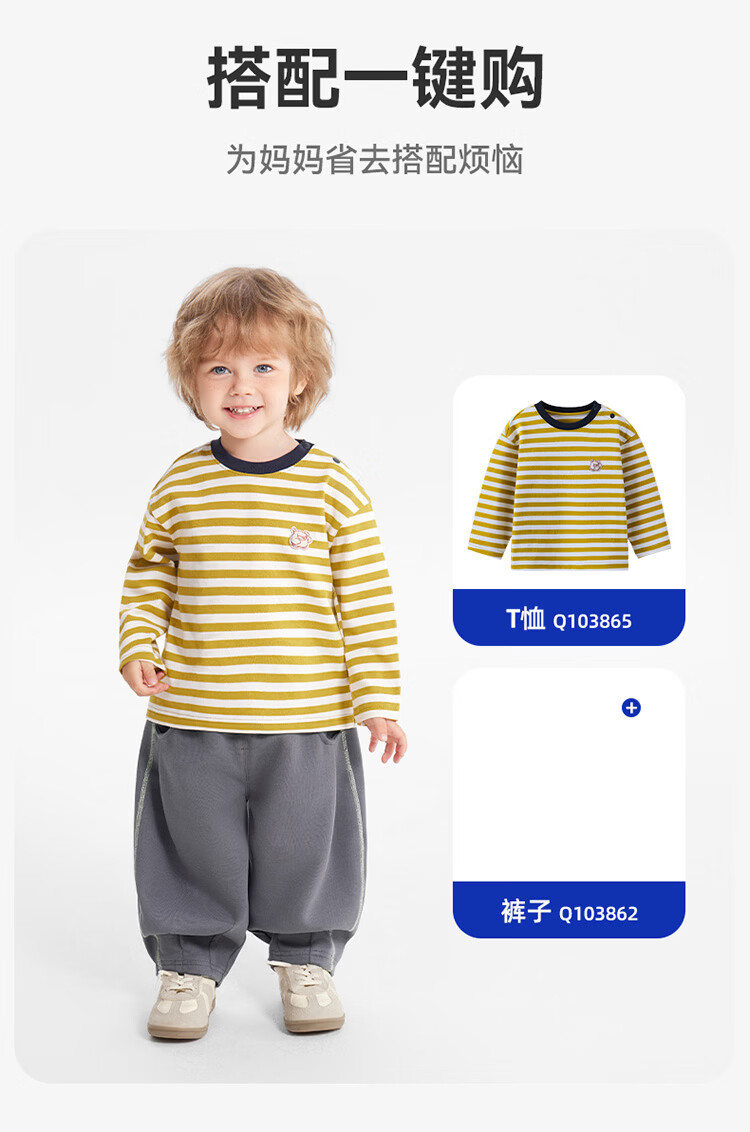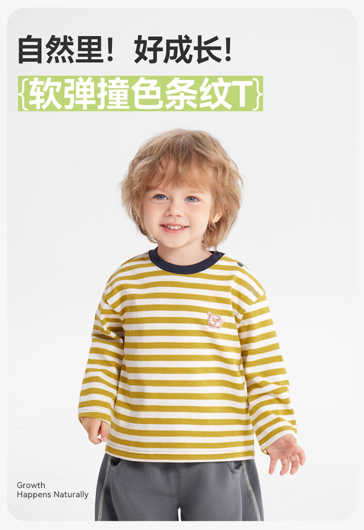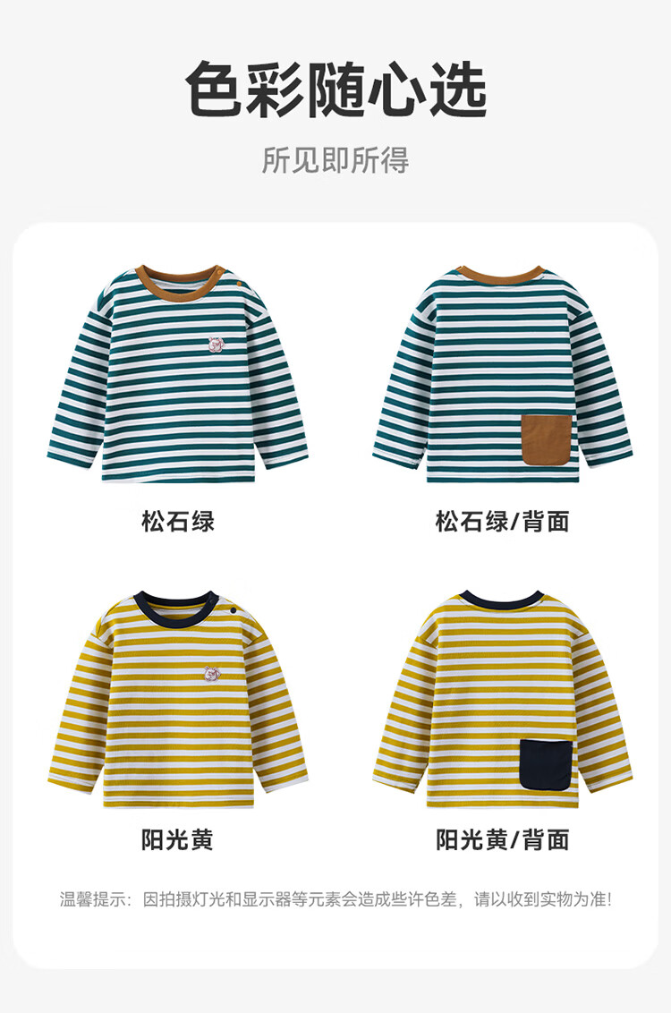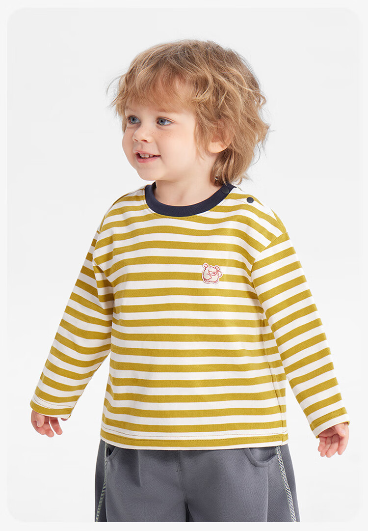 Ciciibear (ciciibear) Cici Bear baby T-shirt long-sleeved spring and autumn boys bottoming round neck striped inner children's top 2026 new style sunshine yellow 80