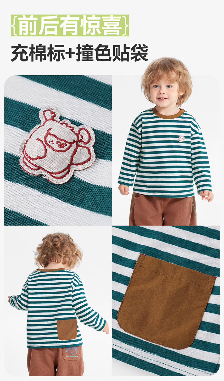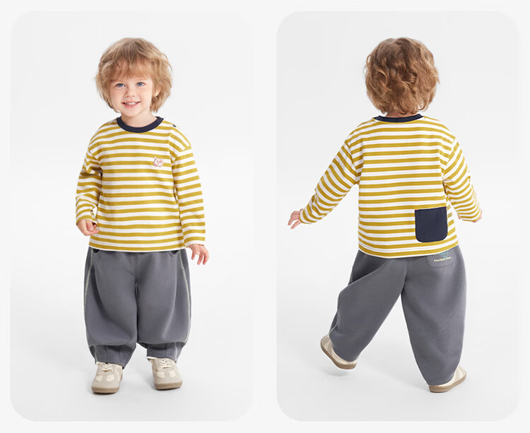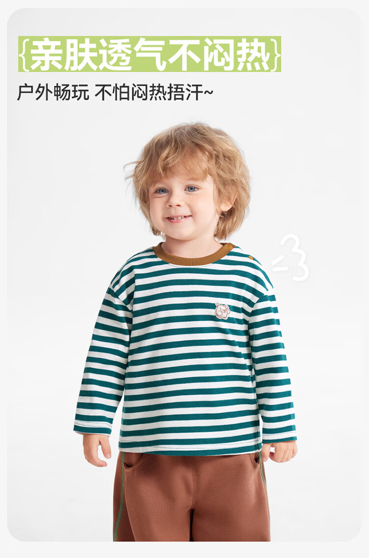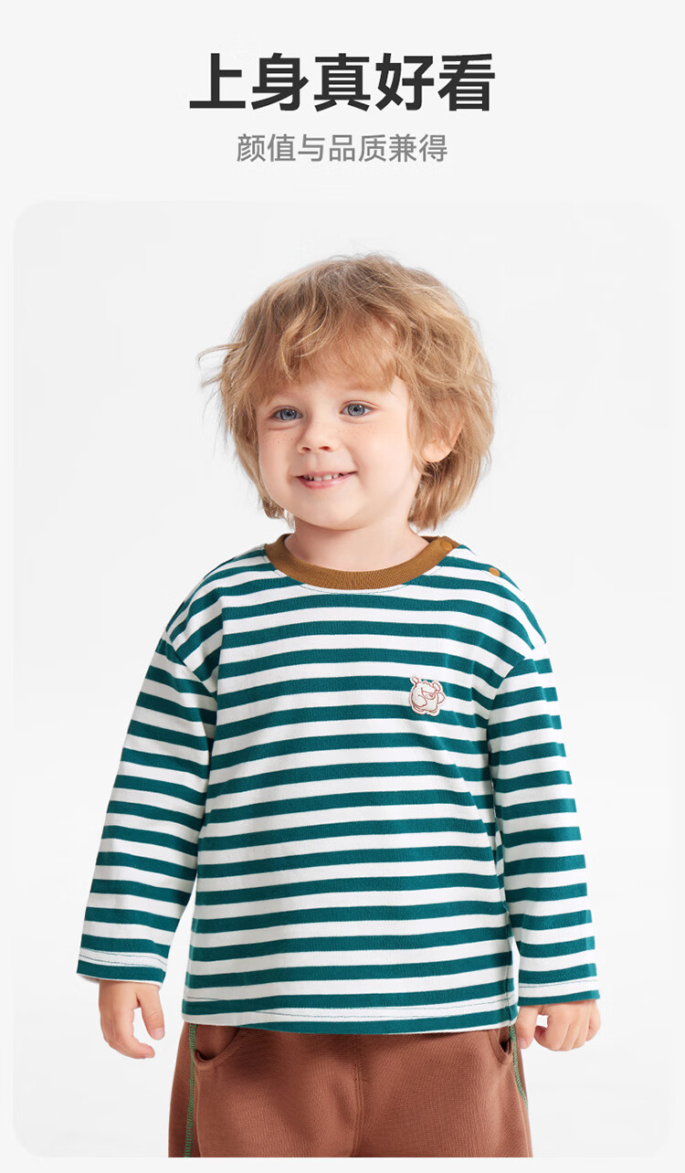 Ciciibear (ciciibear) Cici Bear baby T-shirt long-sleeved spring and autumn boys bottoming round neck striped inner children's top 2026 new style sunshine yellow 80