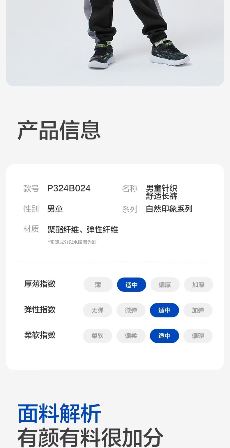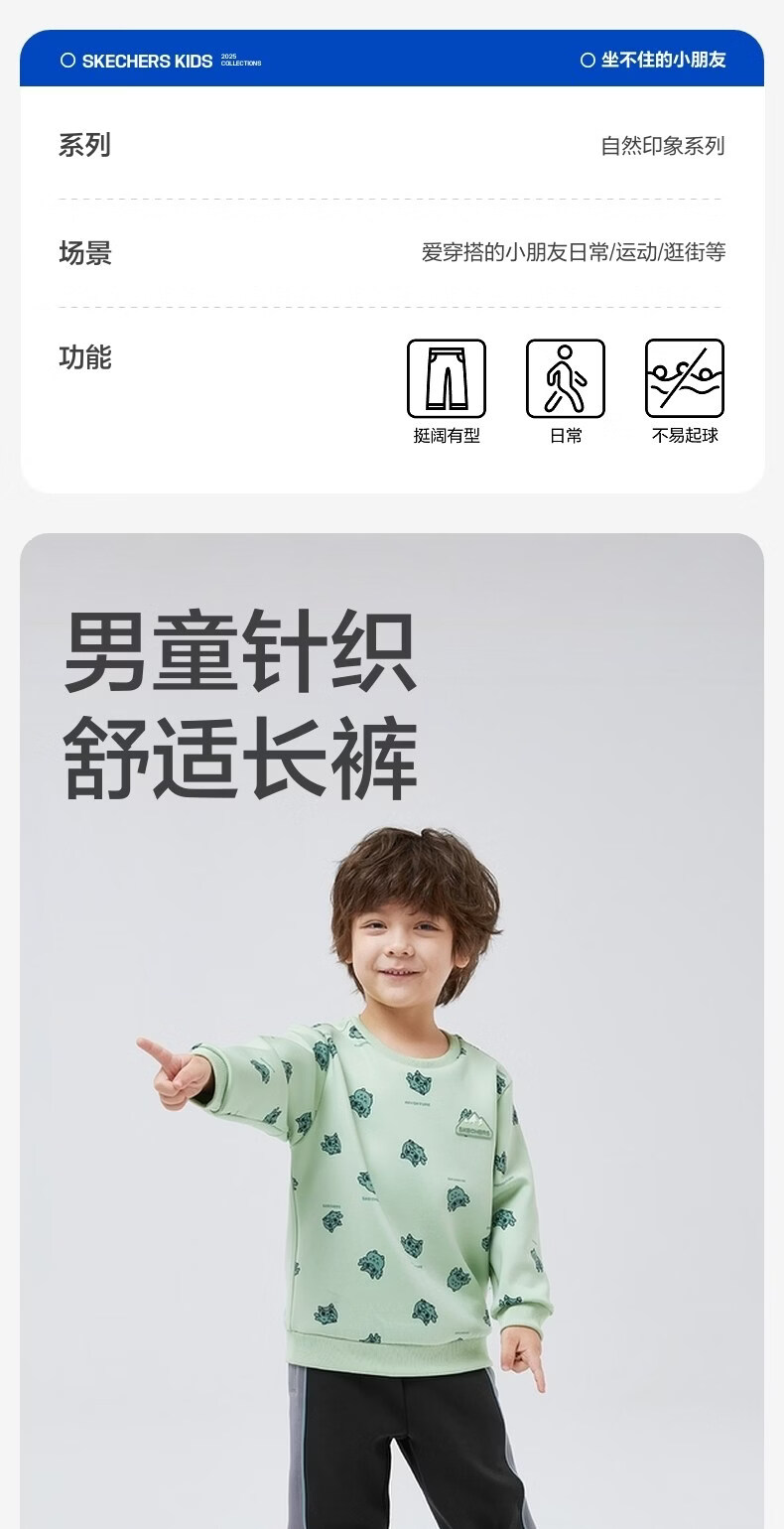 Skechers boys' knitted trousers autumn fashion striped comfortable versatile casual sports pants P324B024 carbon black /0018 100