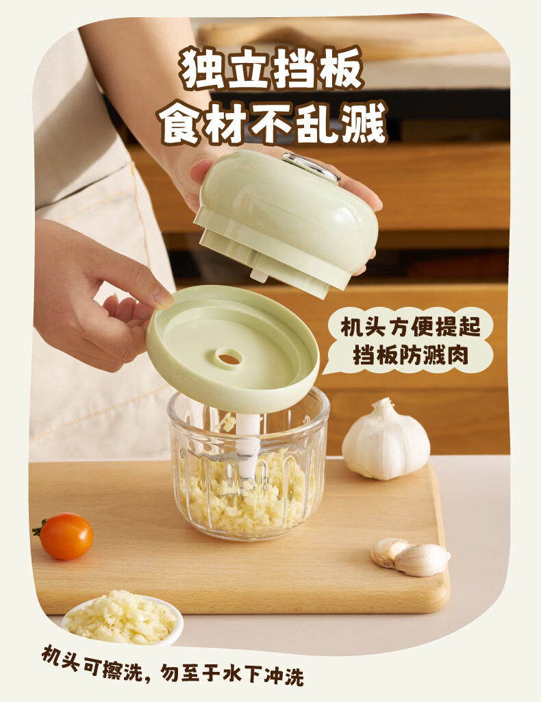 FGFN stirs meat and garlic very fast~ Electric garlic pounder garlic press kitchen New Year's Eve dinner garlic mashed artifact home use two-piece beige + green