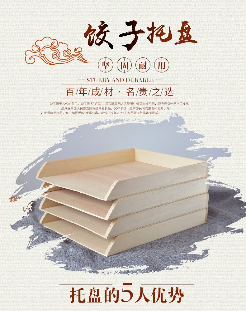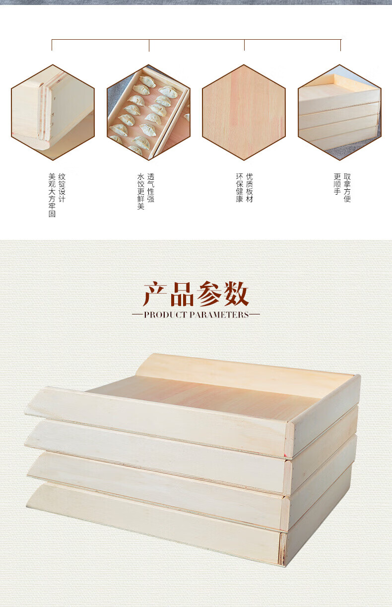 He Jiagong dumpling board tray commercial refrigerator dumpling tray frozen quick-frozen dumpling curtain wooden dumpling tray length 35*width 30*height 4.5/place 35 dumplings