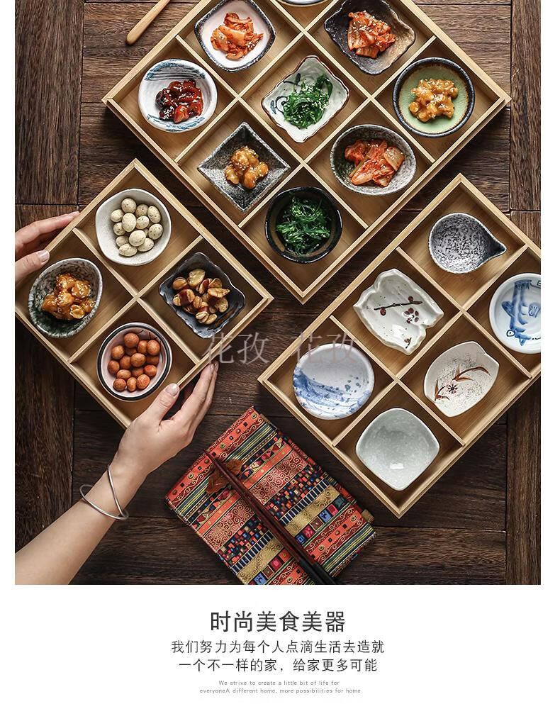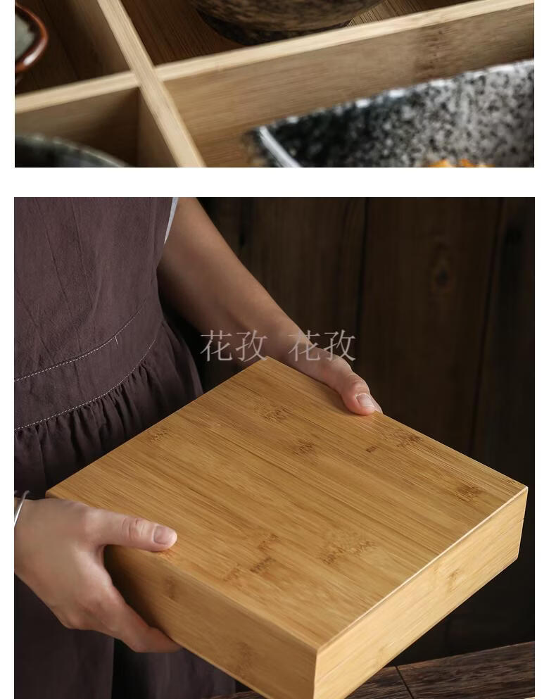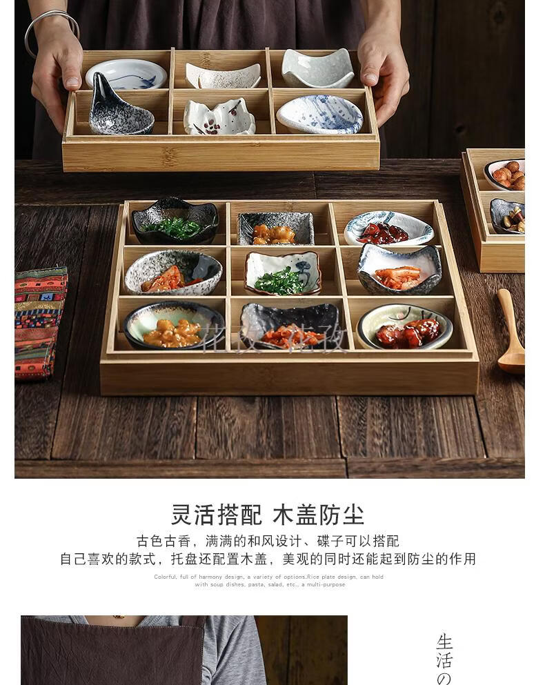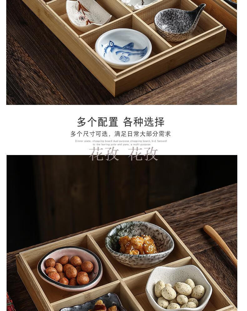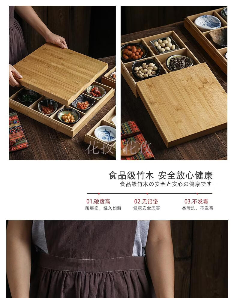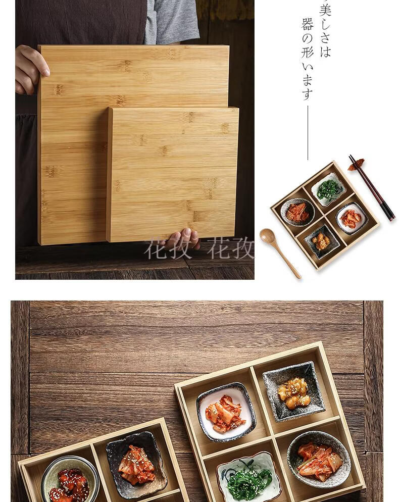 He Jiagong Jiugongge Tableware Bamboo Jiugongge Tableware with Cover Bamboo Box Restaurant B&B Dining Package Optional 3 Plates