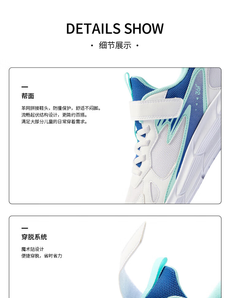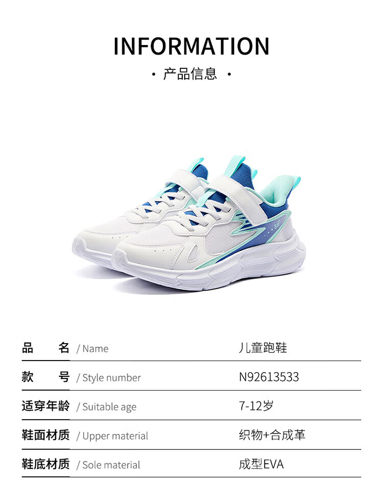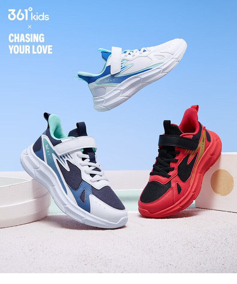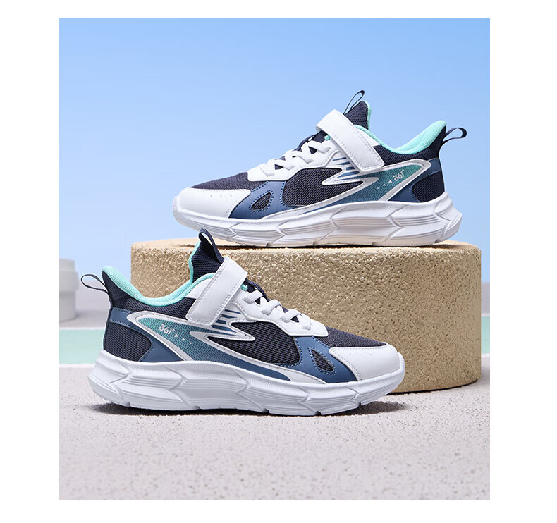 361 361 degree children's shoes, girls' sports shoes, children's shoes, new medium and large children's girls' mesh breathable boys' running shoes, light blue/361 degree white/eternal blue, size 35