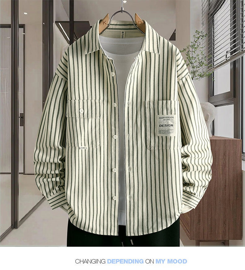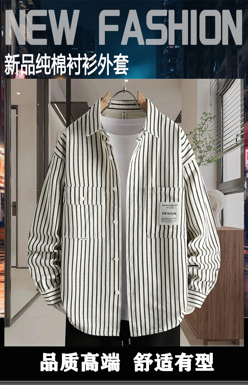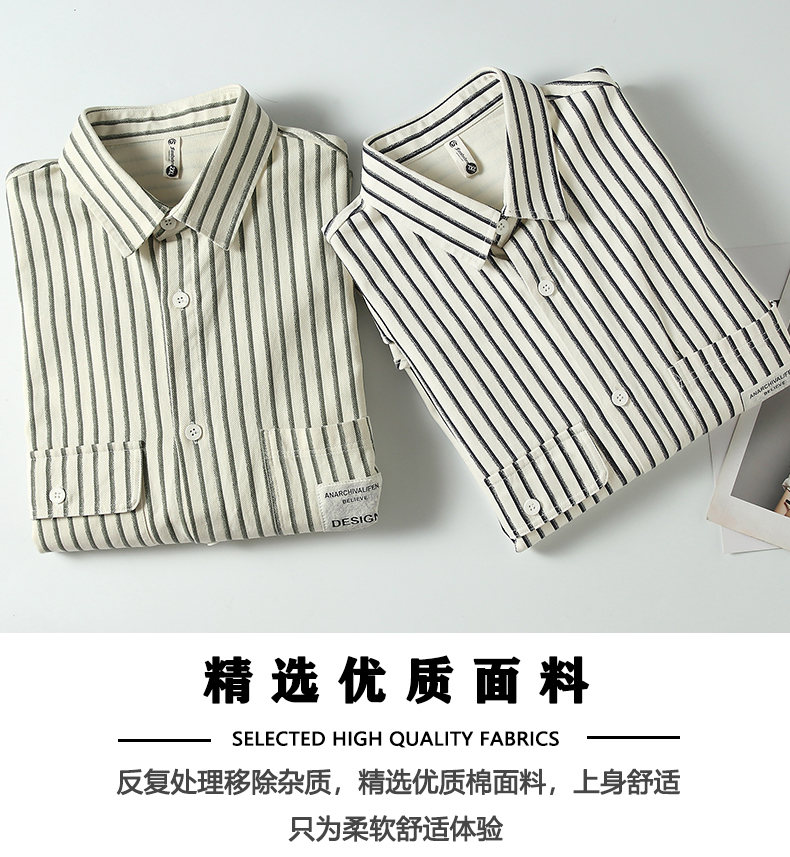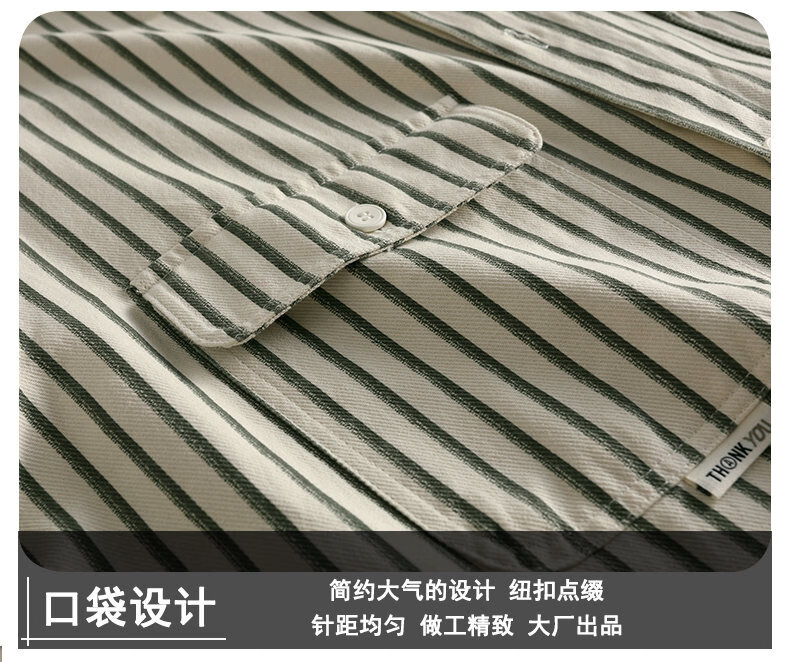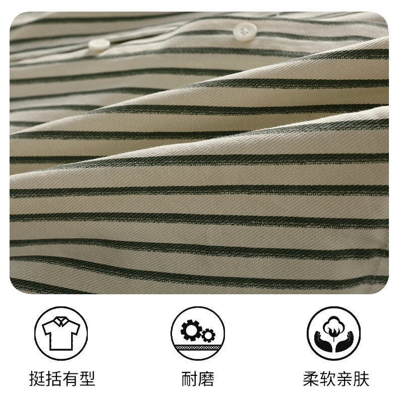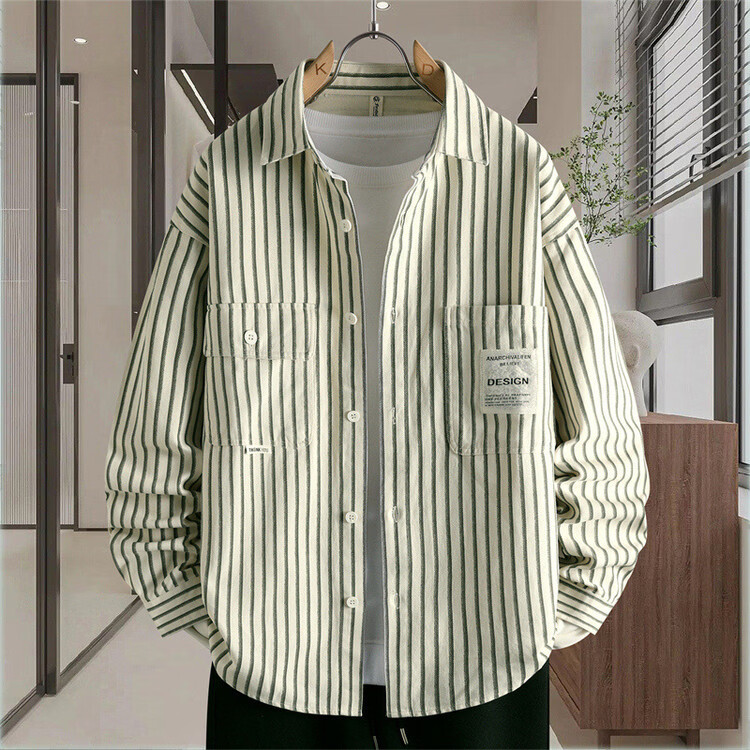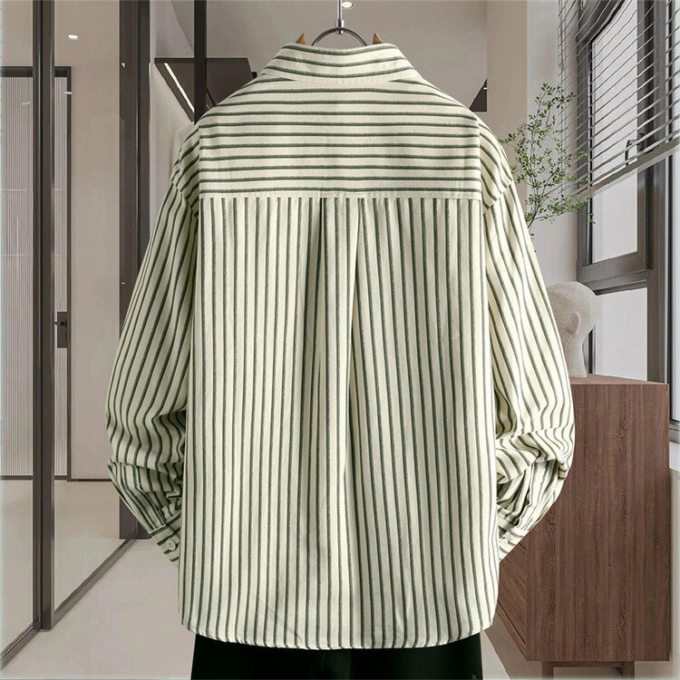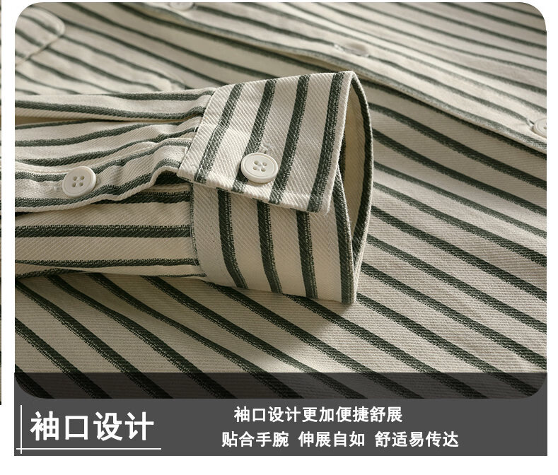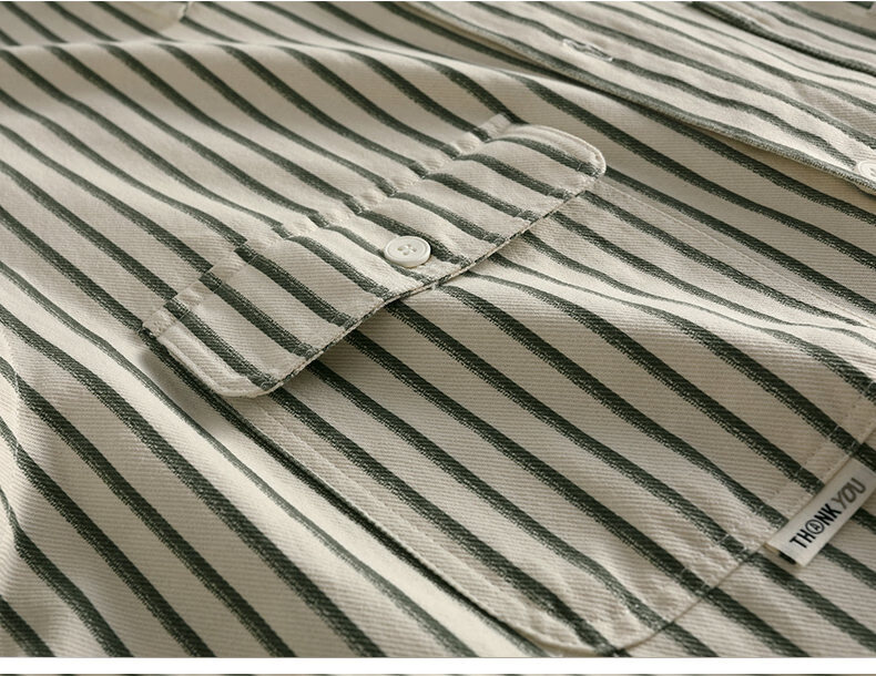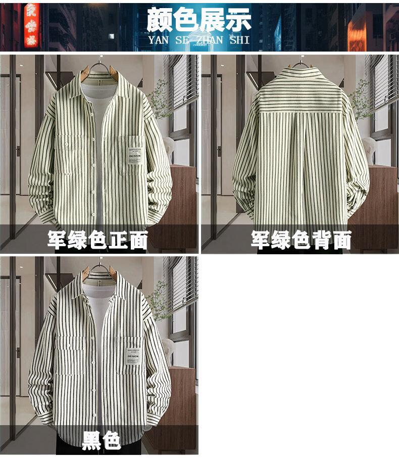 Hengyuanxiang pure cotton long-sleeved shirt men's autumn trendy casual striped shirt handsome loose work shirt jacket military green M