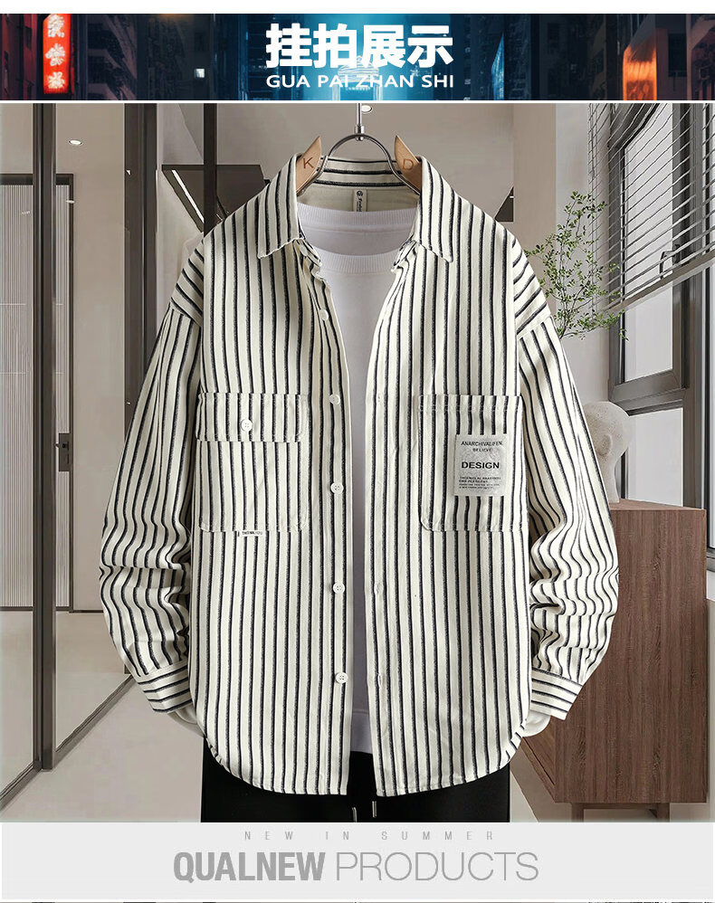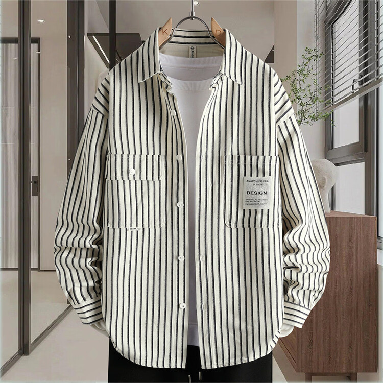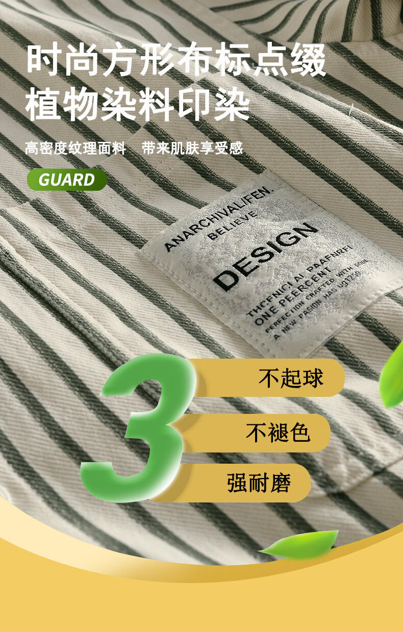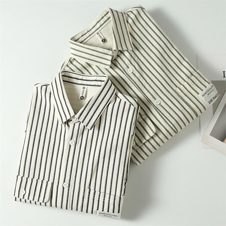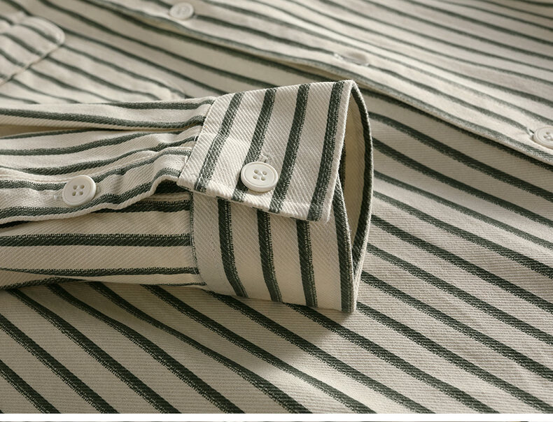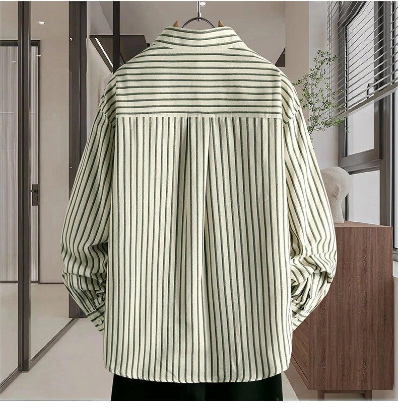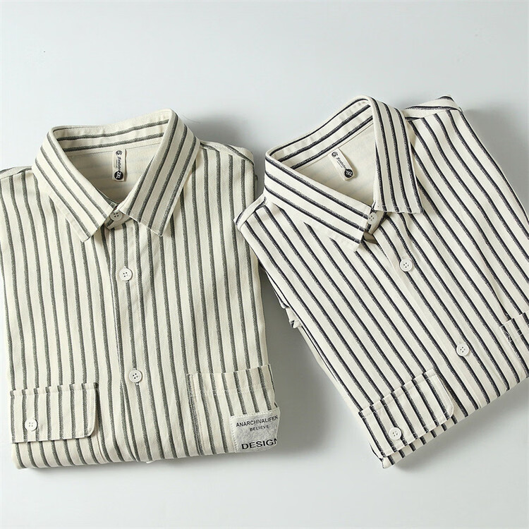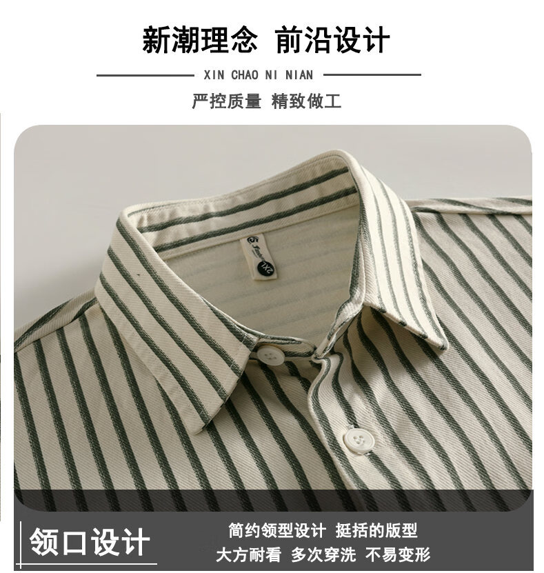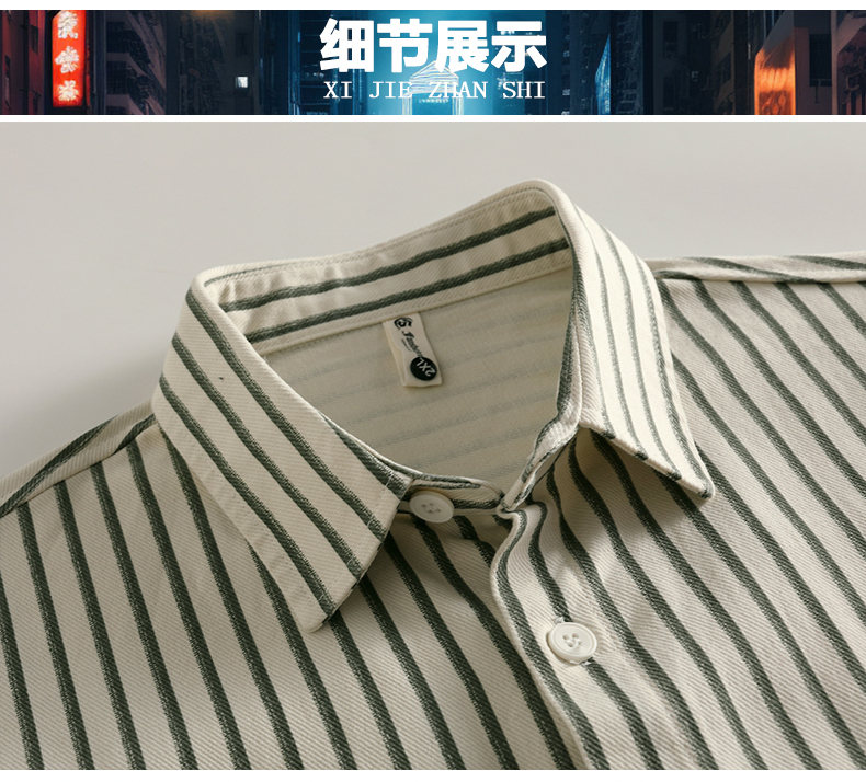 Hengyuanxiang pure cotton long-sleeved shirt men's autumn trendy casual striped shirt handsome loose work shirt jacket military green M