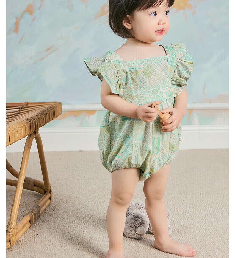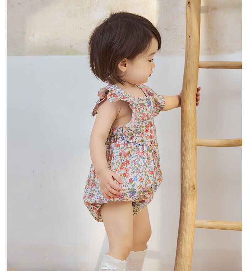 Nido Bear's new summer baby jumpsuit, baby girl's pure cotton crawling suit, cute midsummer daisy 66cm