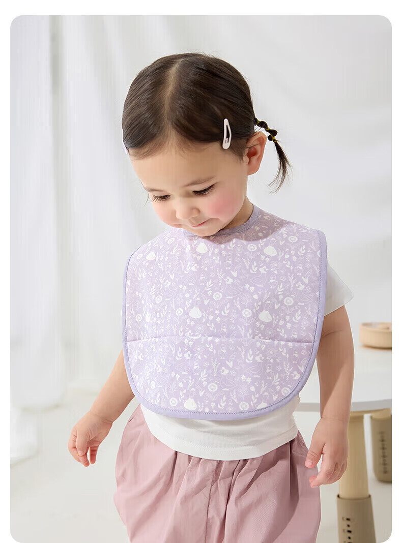 Nido Bear Baby Eating Bib Children's Rice Pocket Baby Food Cover Cover Waterproof and Anti-Dirty Kindergarten Spring and Summer Purple No Specifications