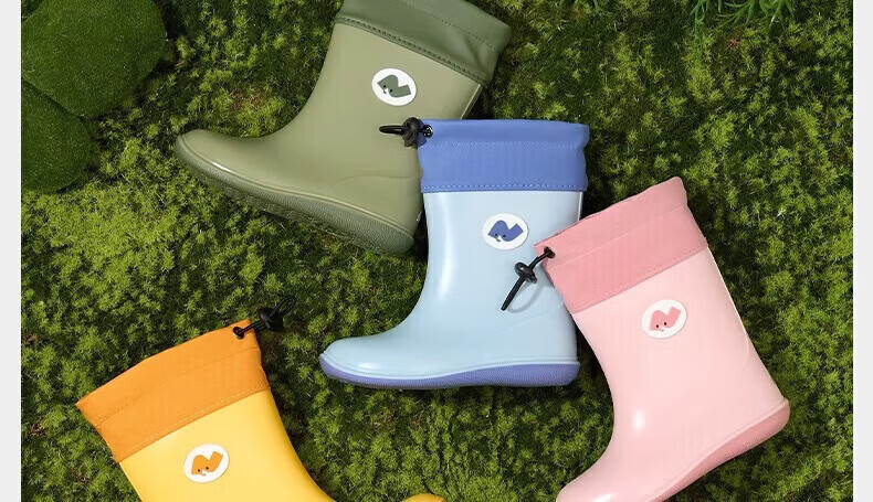 Nido Bear children's rain boots, baby waterproof rain boots, boys and girls, non-slip water shoes for toddlers, hemmed version YX2502 khaki green 14, inner length 14cm, suitable for feet 13cm long