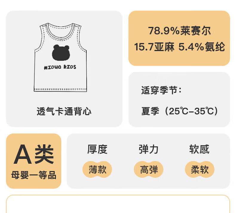 Nido Bear Lyocell Summer New Children's Sports Vest Men's and Women's Baby Cute Cartoon Vest Blue Bear 100