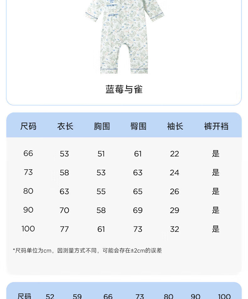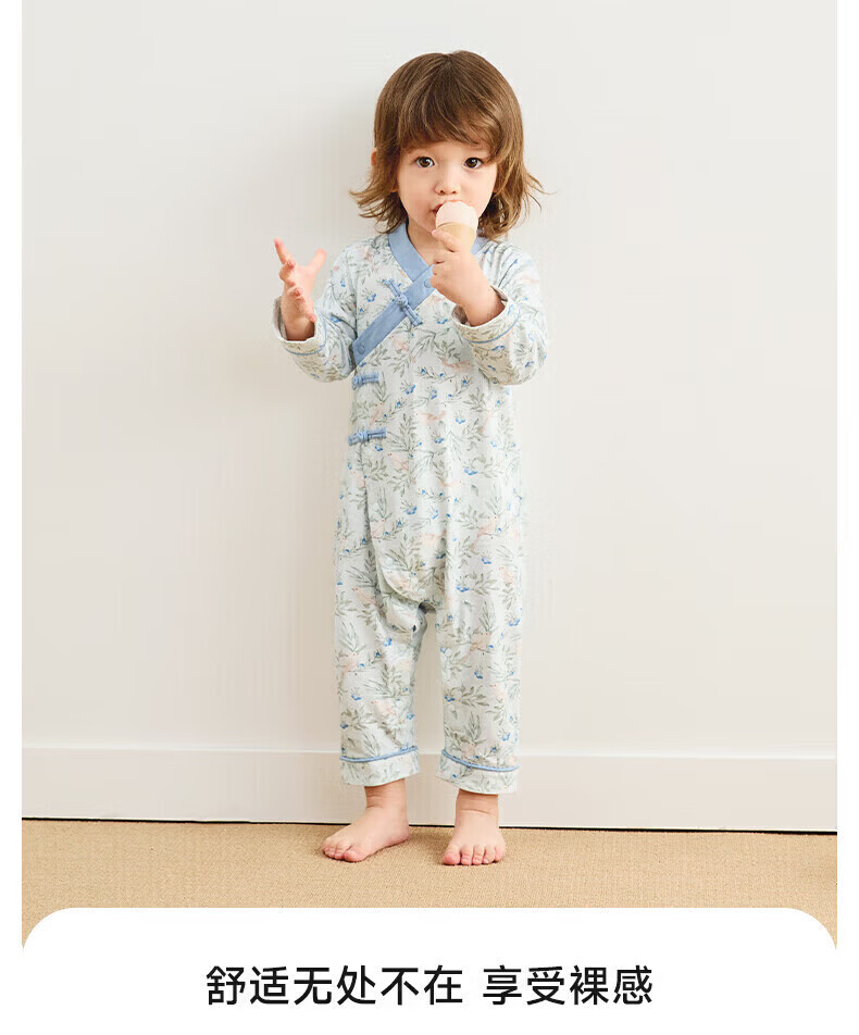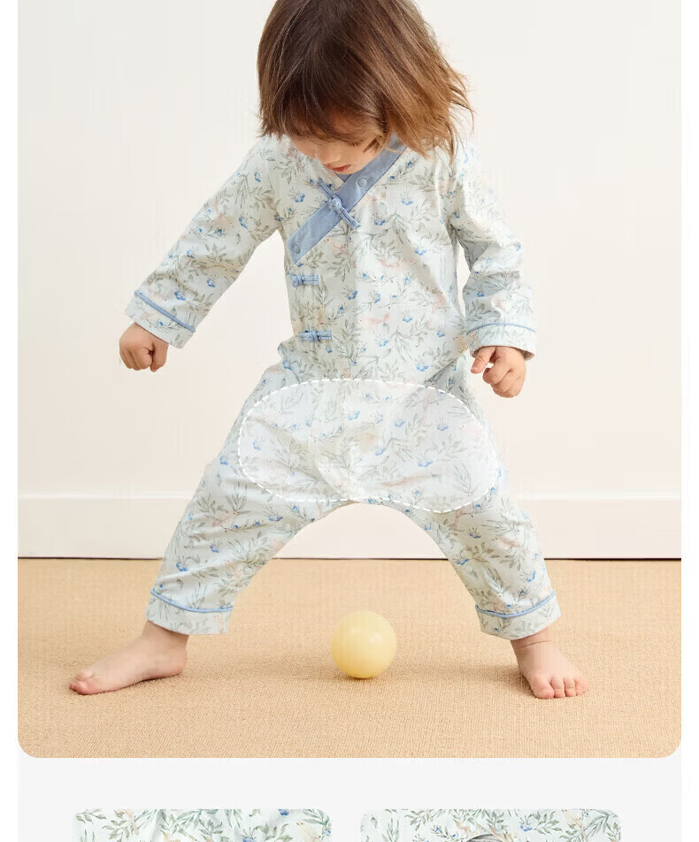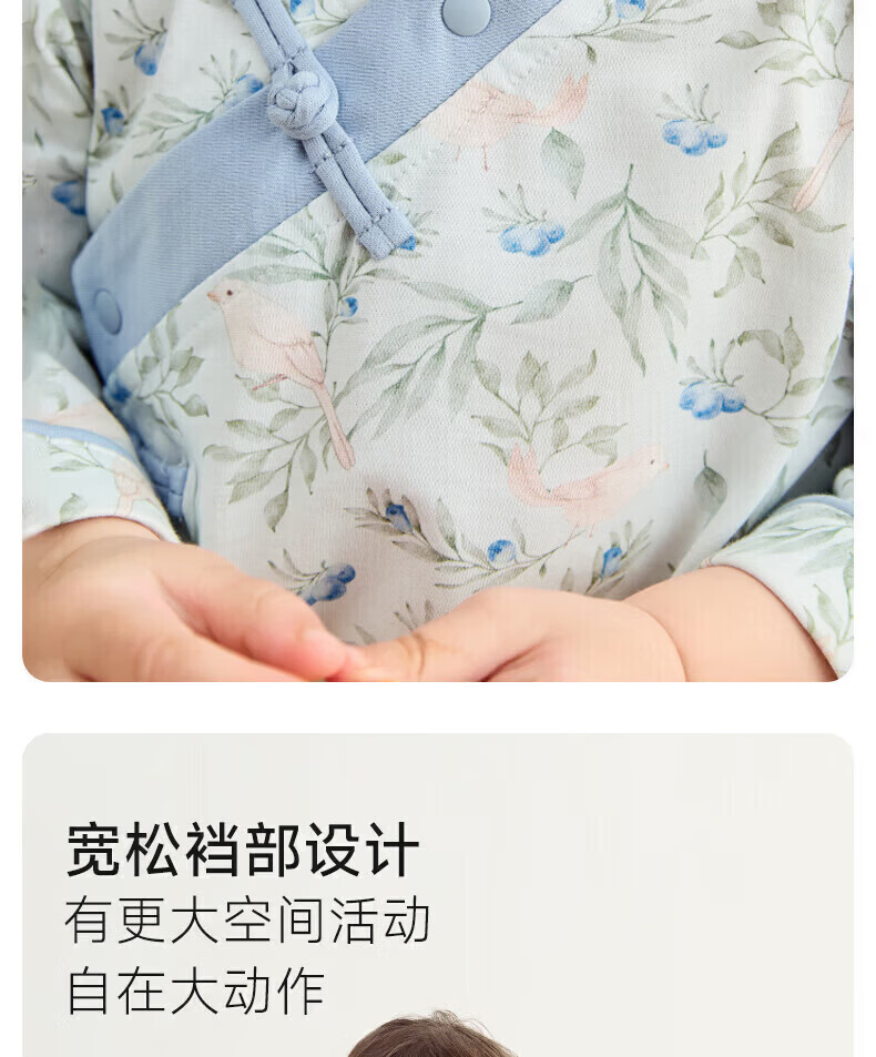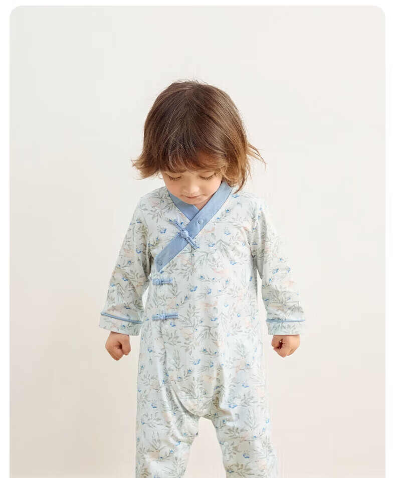 Nido Bear's new baby clothes spring baby boy jumpsuit pure cotton crawl suit for outdoor wear new Chinese style Blueberry and Sparrow 73cm