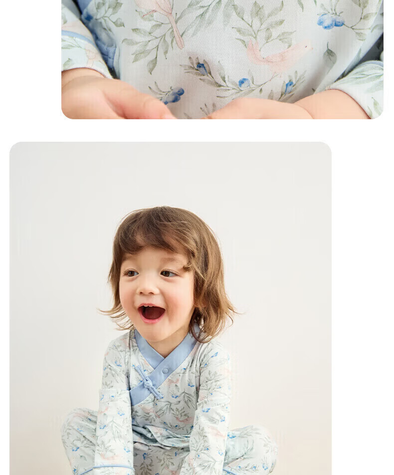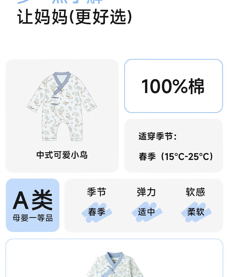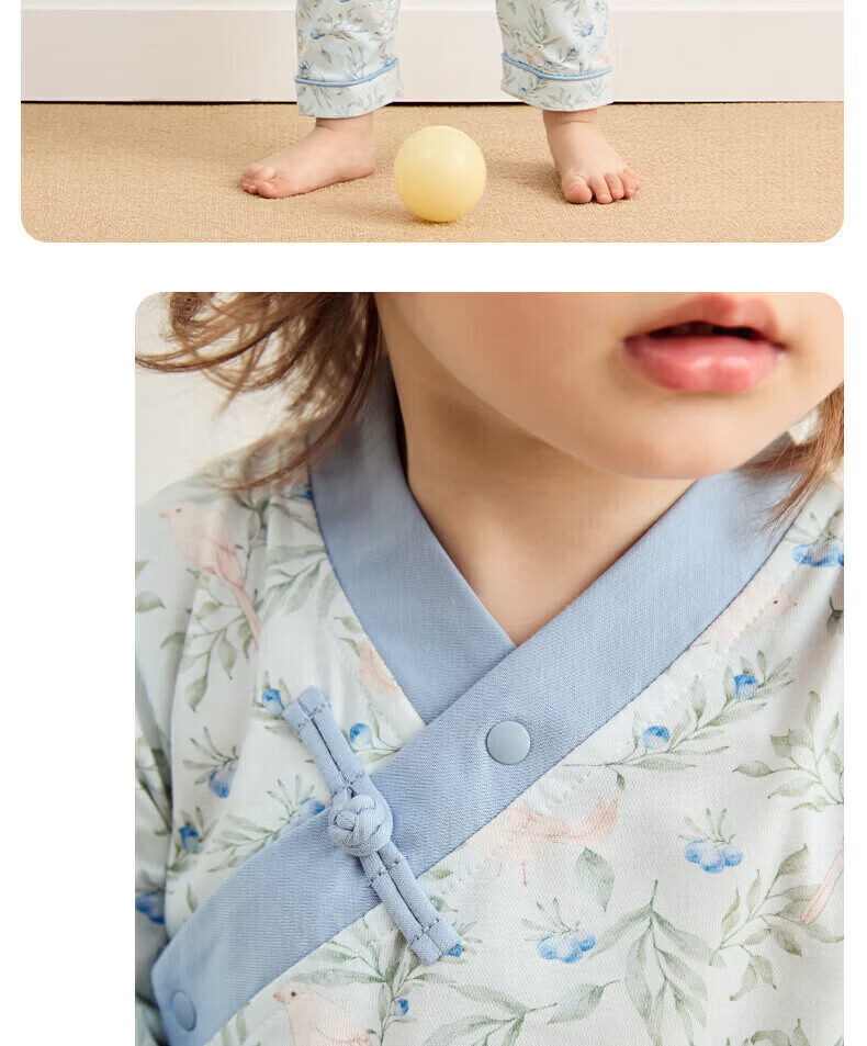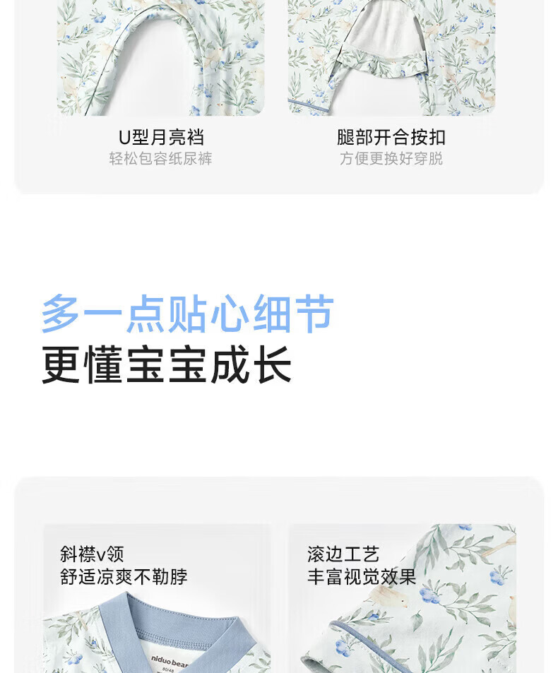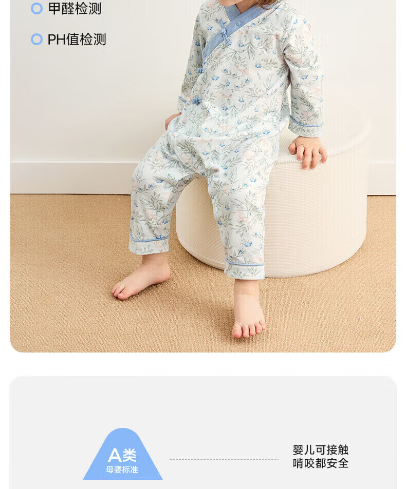 Nido Bear's new baby clothes spring baby boy jumpsuit pure cotton crawl suit for outdoor wear new Chinese style Blueberry and Sparrow 73cm