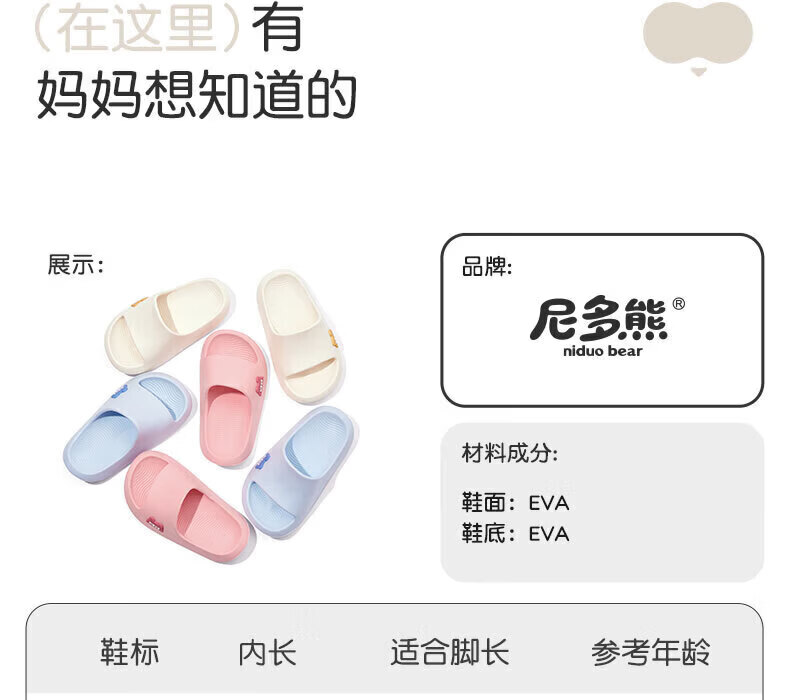 Nido Bear children's slippers summer home shoes boys and girls non-slip baby slippers children's sandals off-white single layer 20 inner length