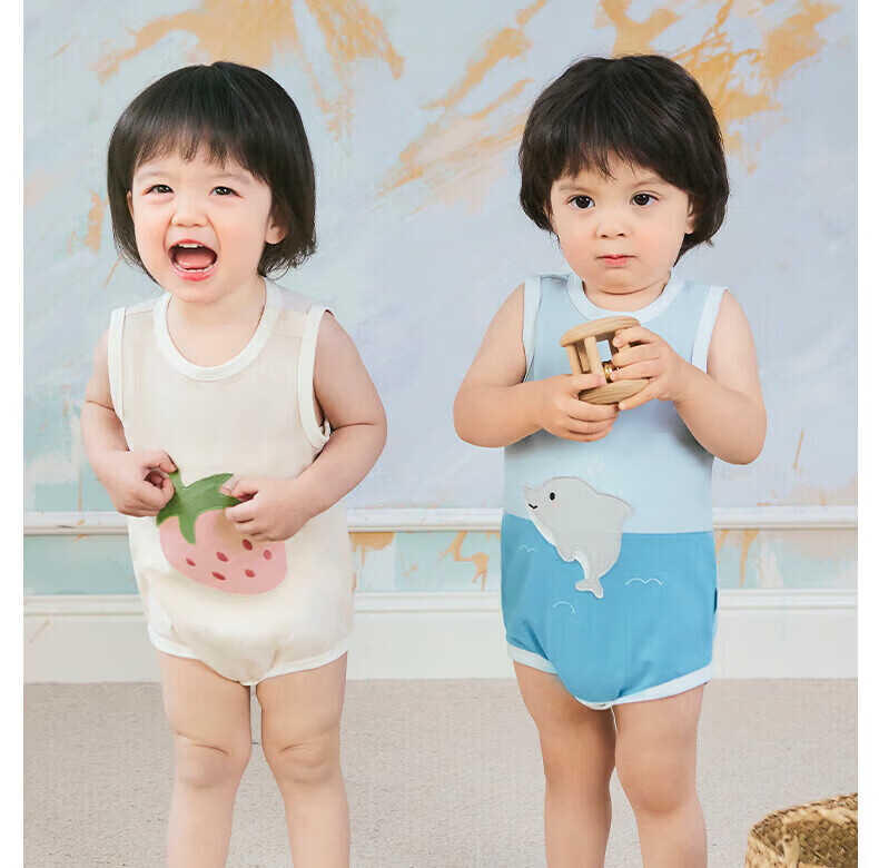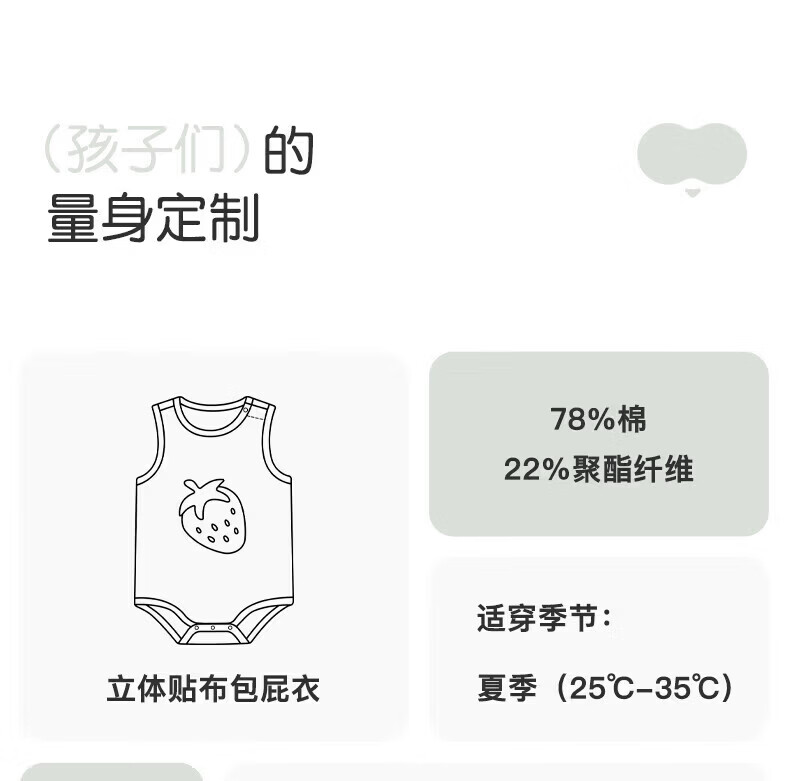 Nido Bear summer new baby jumpsuit baby sleeveless baby vest newborn vest crawling suit air-conditioned suit cream strawberry 73cm