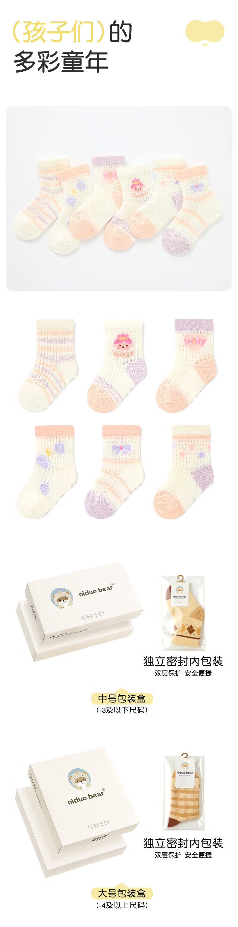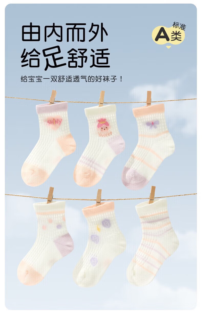 Nido Bear Children's Socks Girls Summer Thin Breathable Mesh Baby Socks Six Pairs Baby Socks Cute Girls AW2414 Large Mesh 6 Pairs 3-5 Years Old (Suitable for Feet Length 14-16cm)