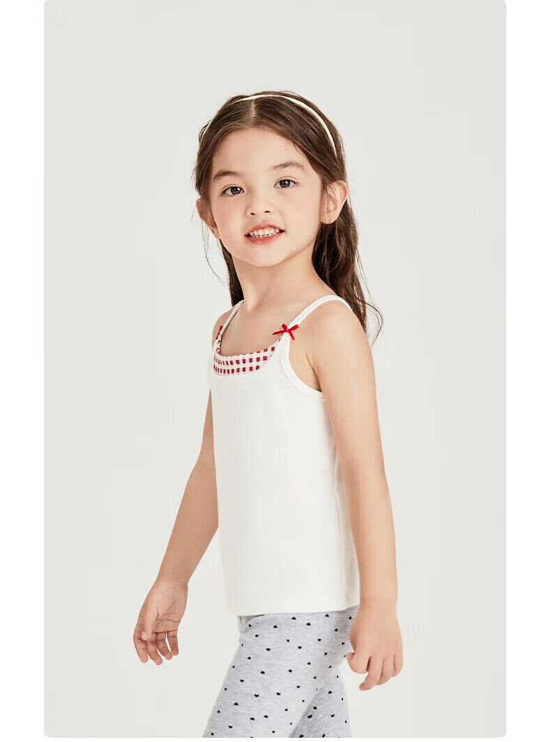 Nido Bear's new summer style girl's patchwork sling baby girl's elastic breathable top with bow inside, red plaid 110 cm