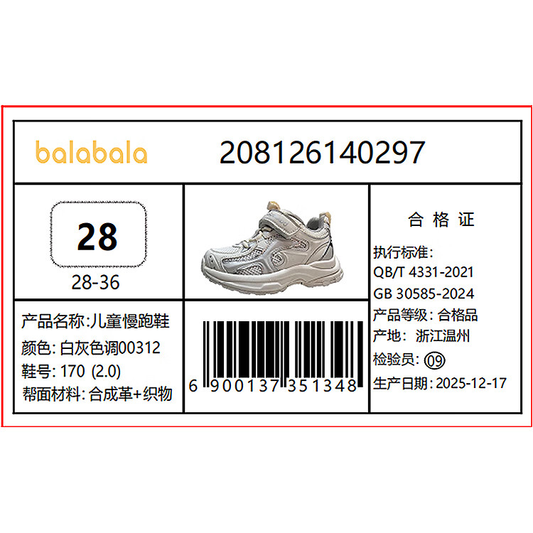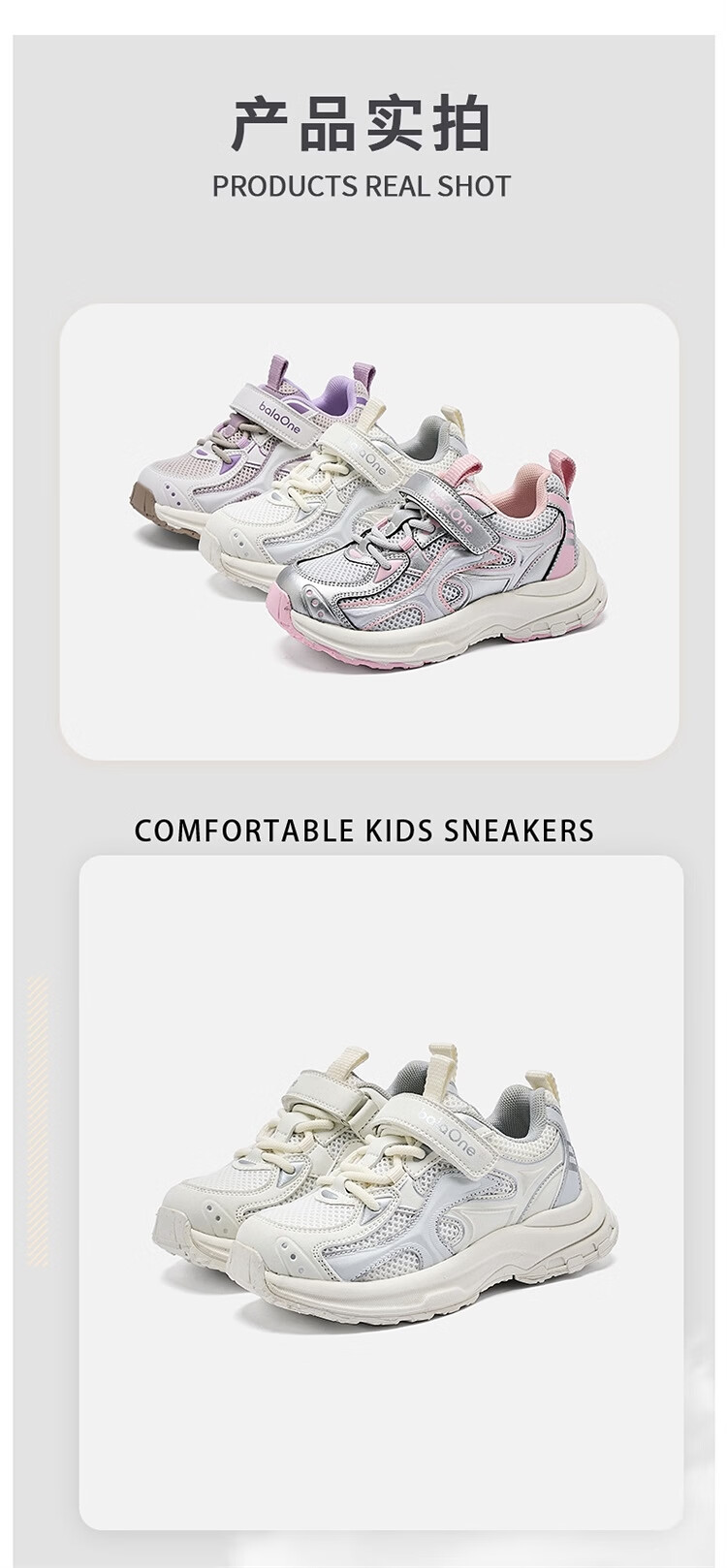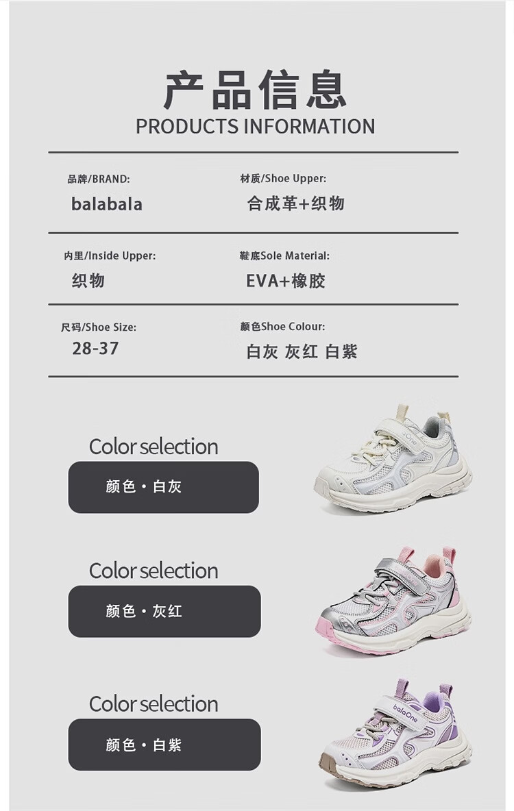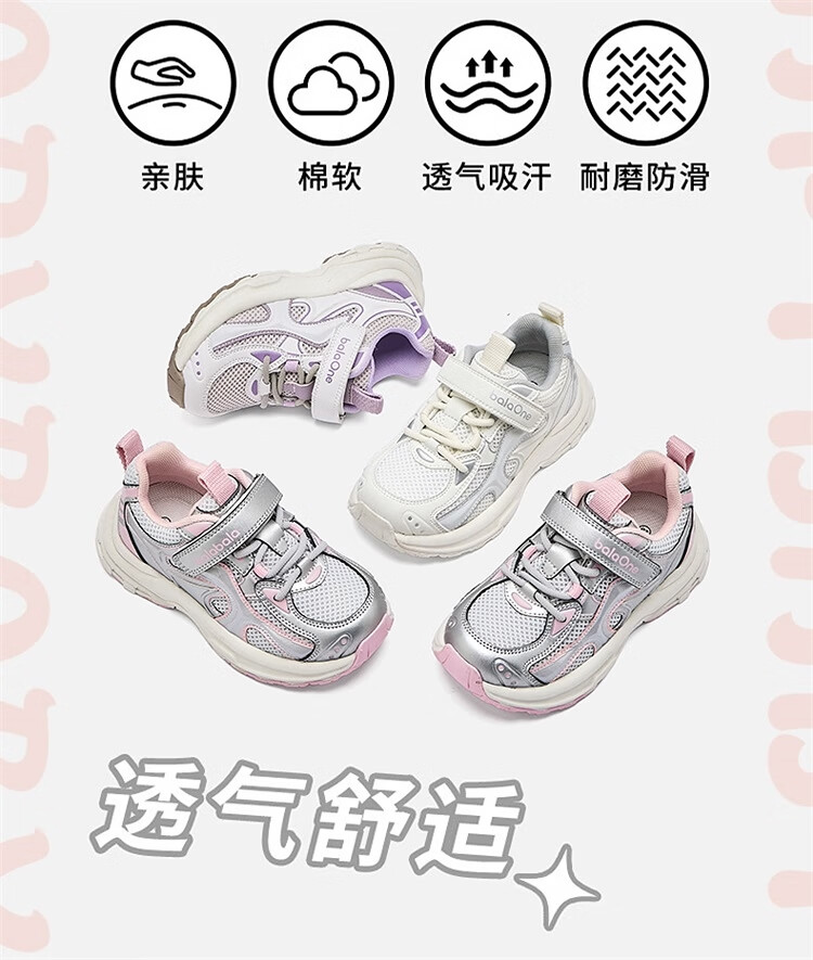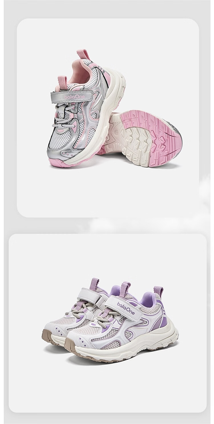 Balabala children's shoes children's outdoor shoes for boys and girls 2026 new spring and autumn breathable mesh sports jogging shoes non-slip shoes white and purple tone 00317 32 (foot length 20)
