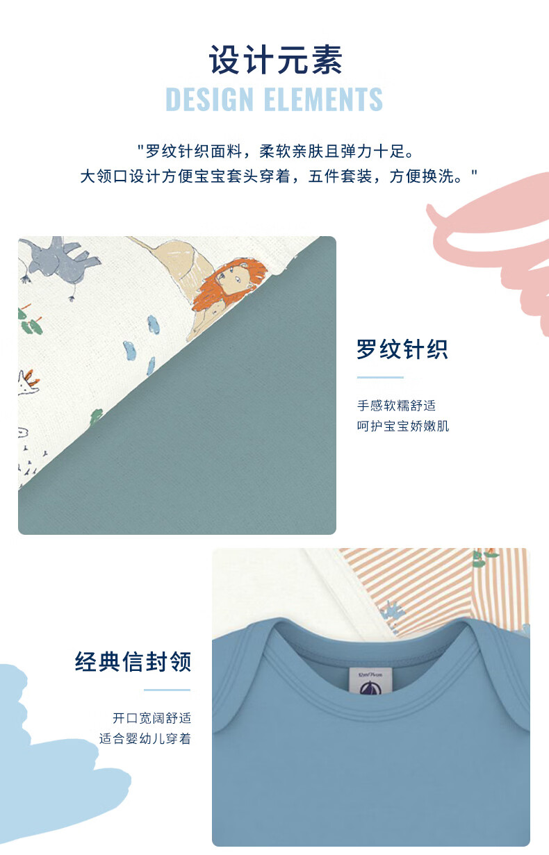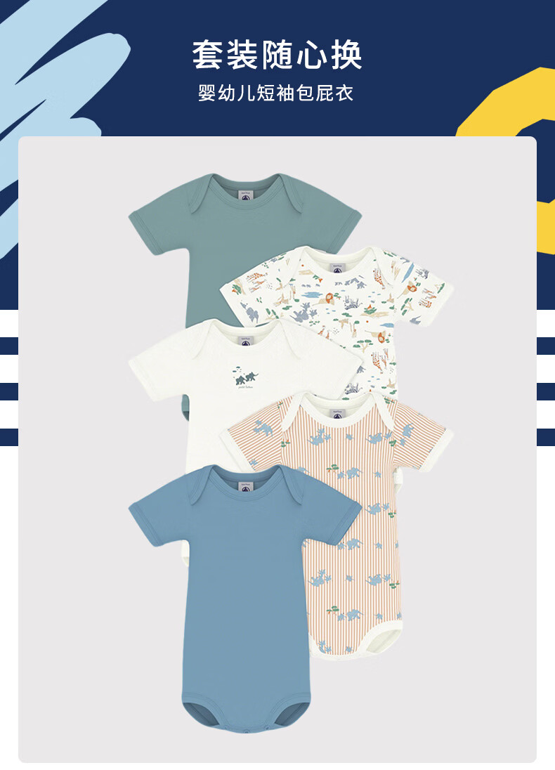 PETIT BATEAU 2026 spring and summer new product French sailing baby baby clothes 5-piece A0FNW mixed color A0FNW 100cm