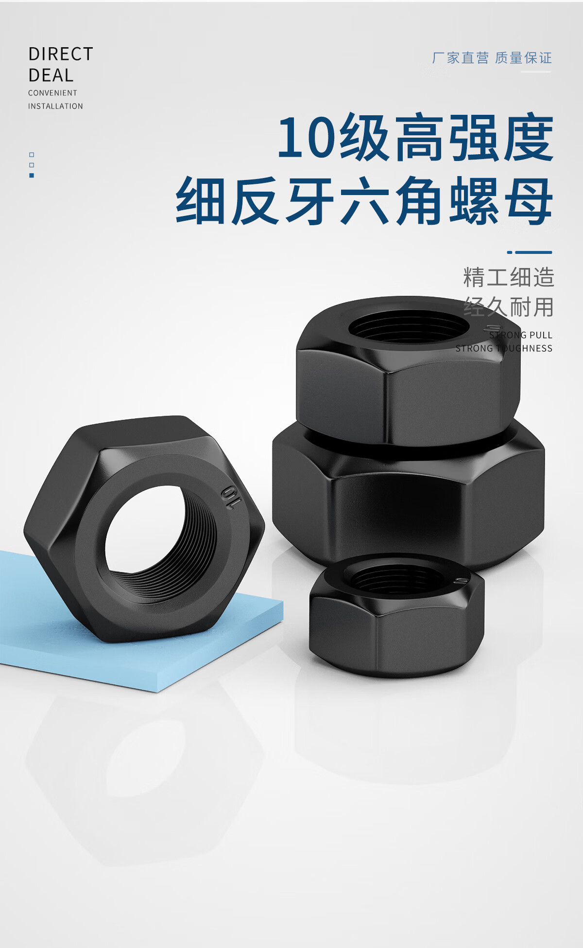 GUWANJI grade 10.9 high-strength counter-thread fine-thread nut black left-hand counter-thread screw cap locking nut M8-M36 M10x1 (20 pieces)