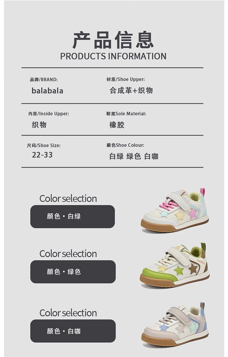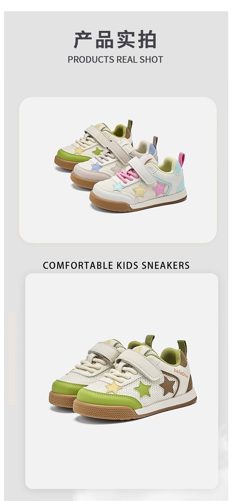 Balabala children's shoes children's outdoor shoes for boys and girls 2026 new spring and autumn mesh breathable and comfortable sports shoes non-slip shoes green tone 00344 23 (foot length 14)